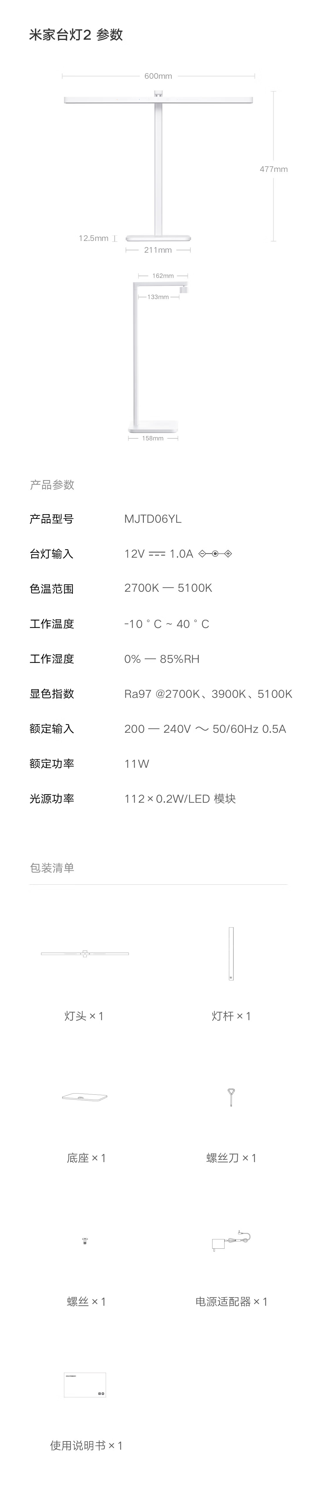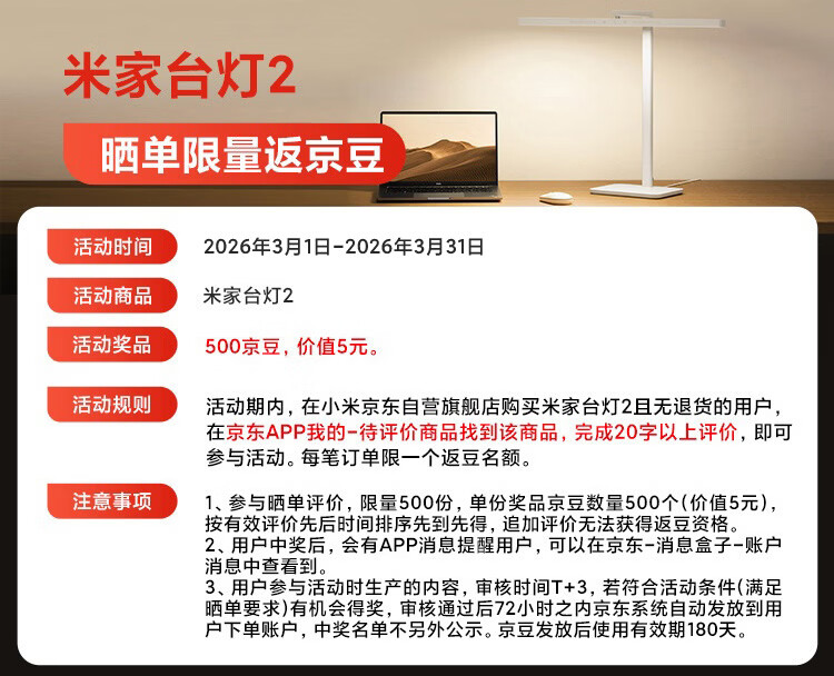 米家小米台灯2 智能护眼学习台灯灯具 儿童学习阅读灯卧室书房
