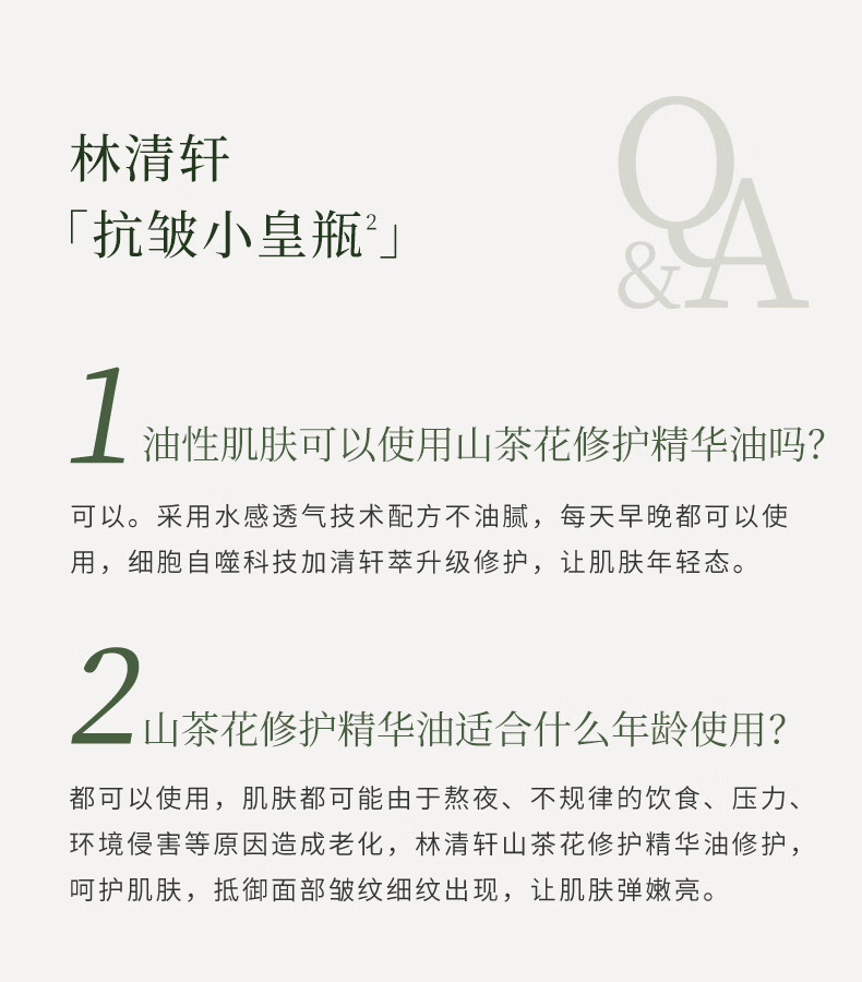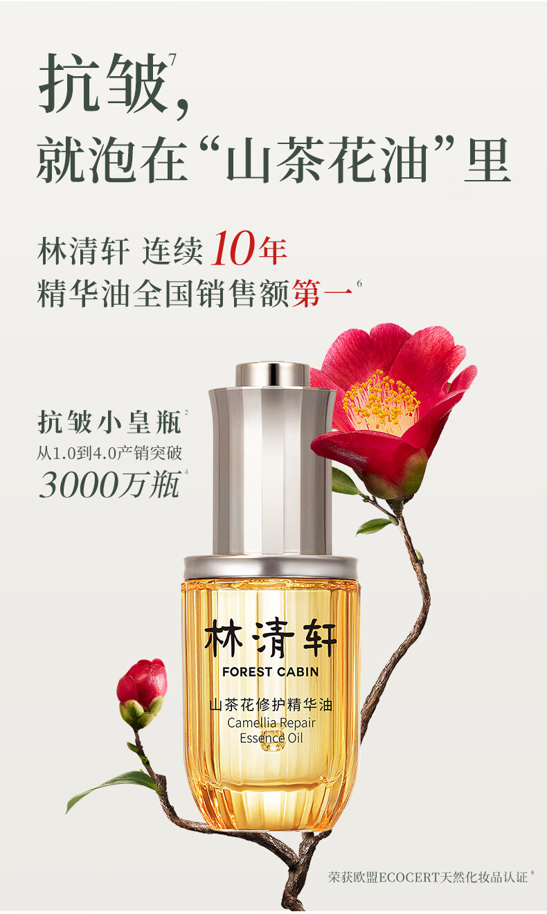 林清轩山茶花修护面部精华油4.0 30ml以油养肤淡纹小皇瓶秋冬干皮护肤油