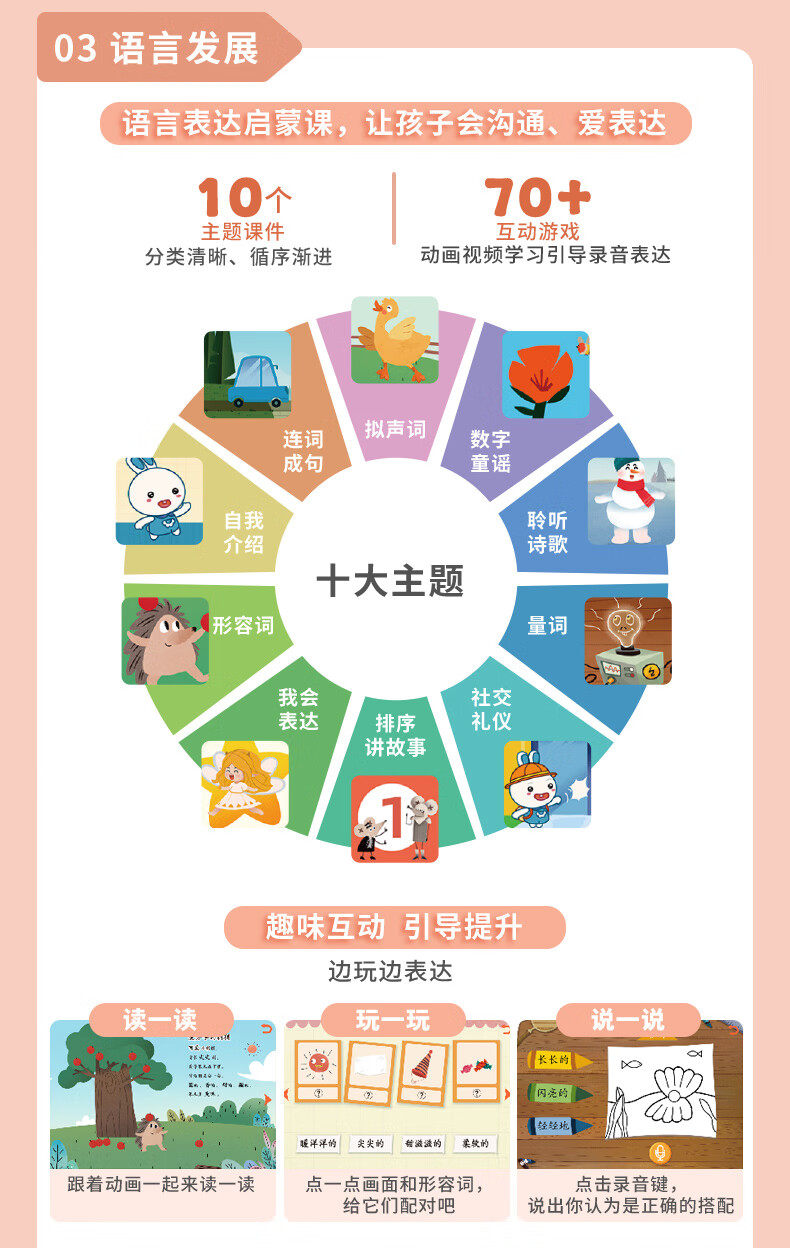京小妹【L3】会说话的语数英全能大课堂幼小衔接打手指点读发声书拼音 会说话的图书【50面】充电版【红色】 识字1500+组词3000+古诗112首