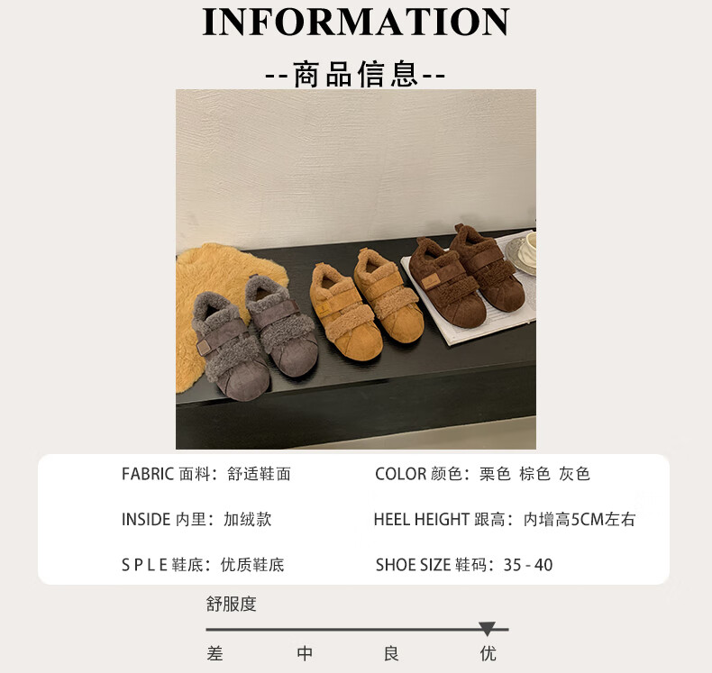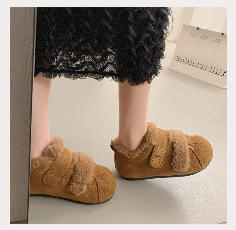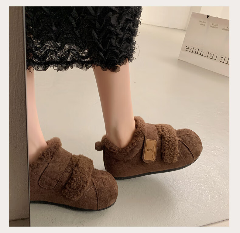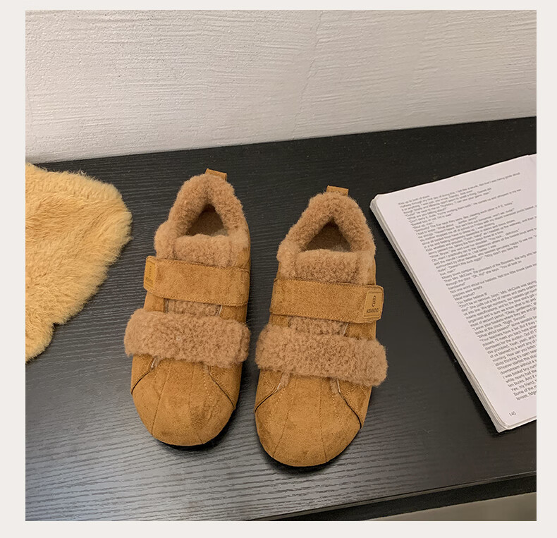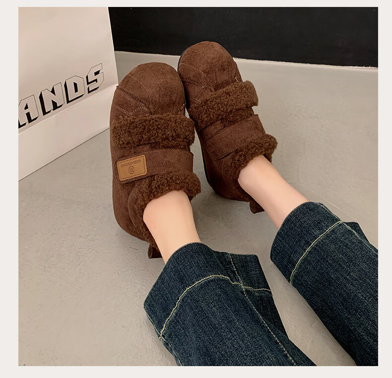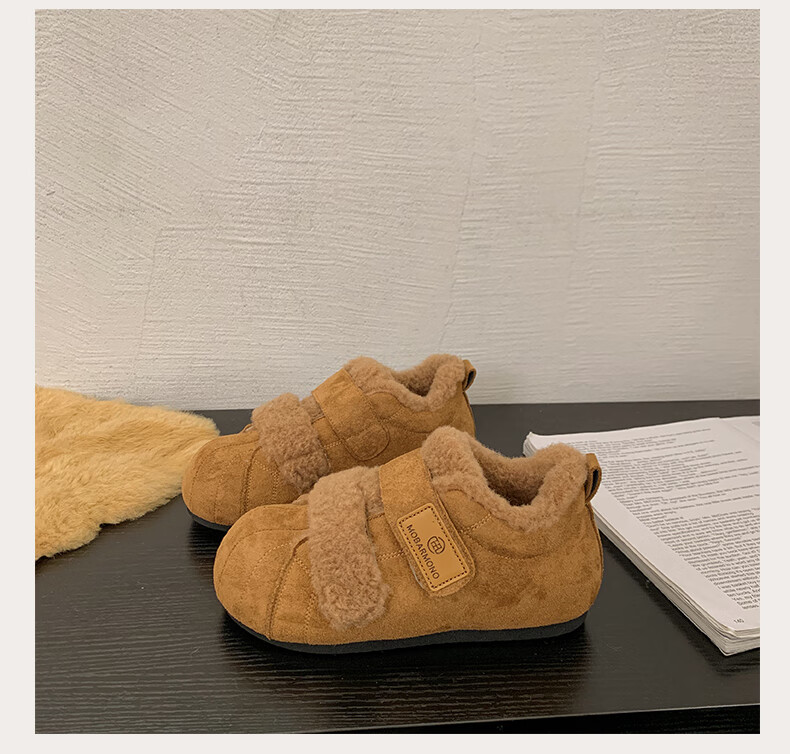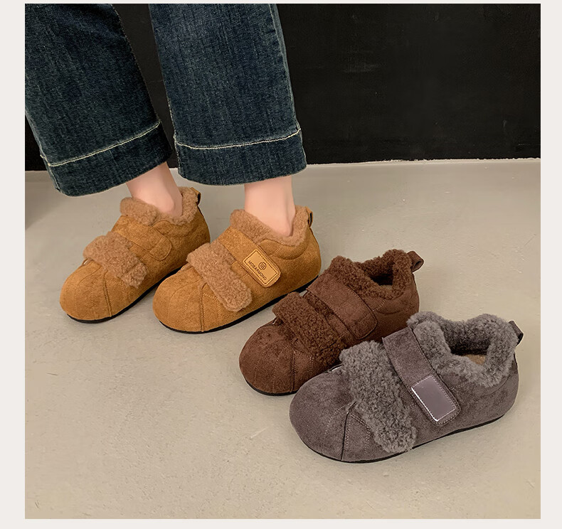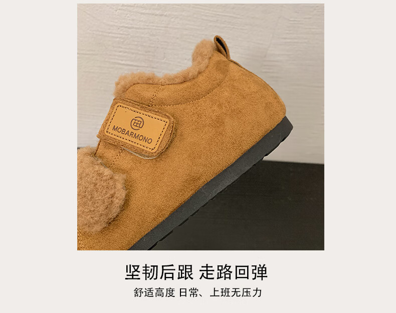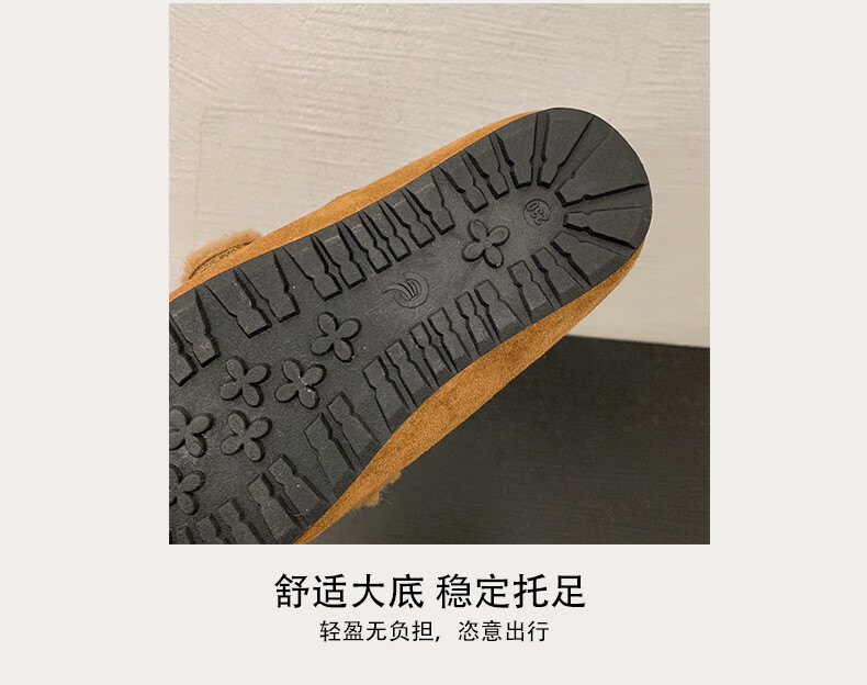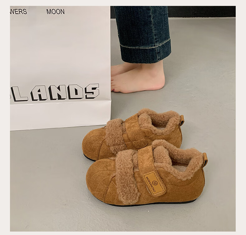 稻草人(MEXICAN)厚底增高羊羔毛毛鞋女2026年冬季新款加绒勃肯鞋保暖棉鞋子雪地靴 棕色 35