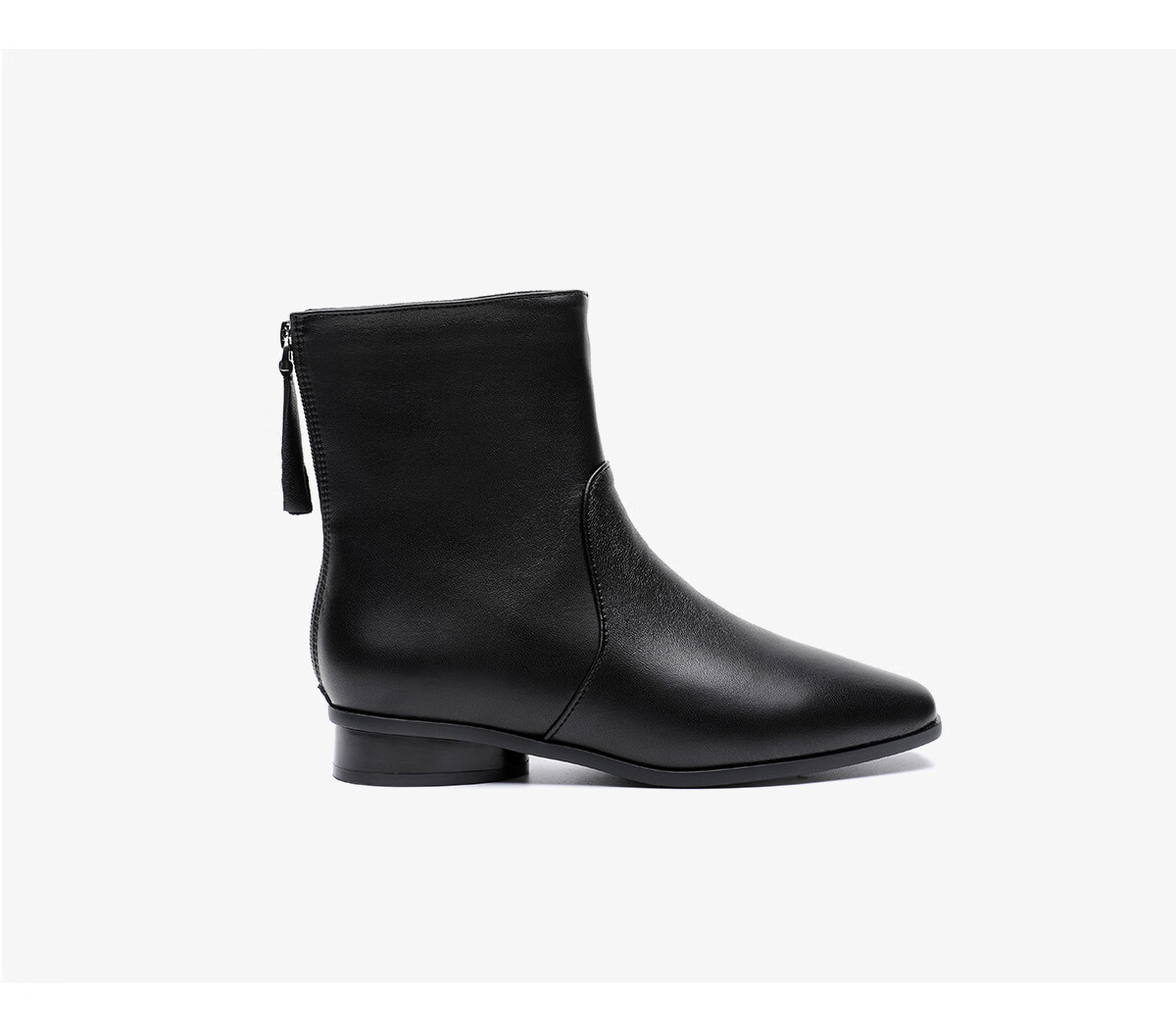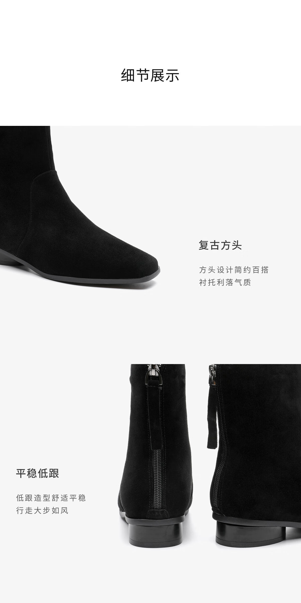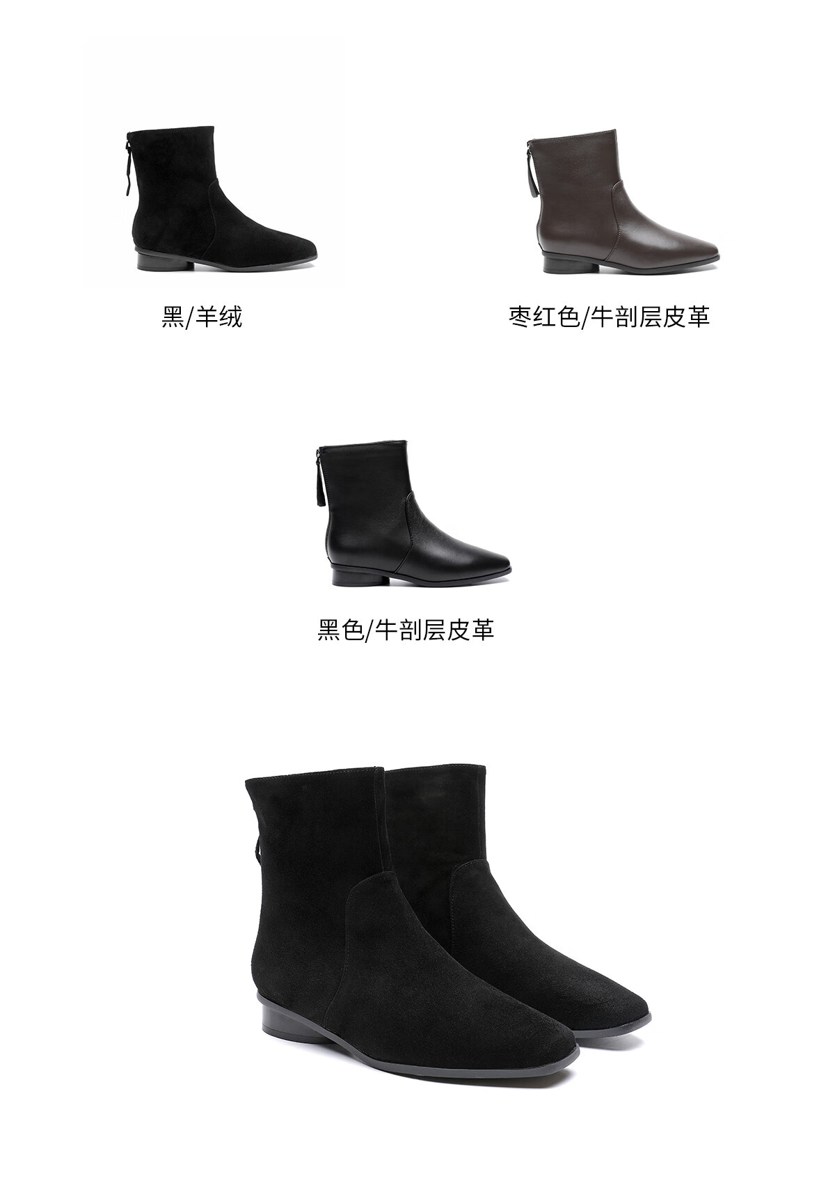 月芽儿2025冬季新款法式通勤短靴女黑色猫跟复古时装靴瘦瘦靴 绒里黑色01T 34