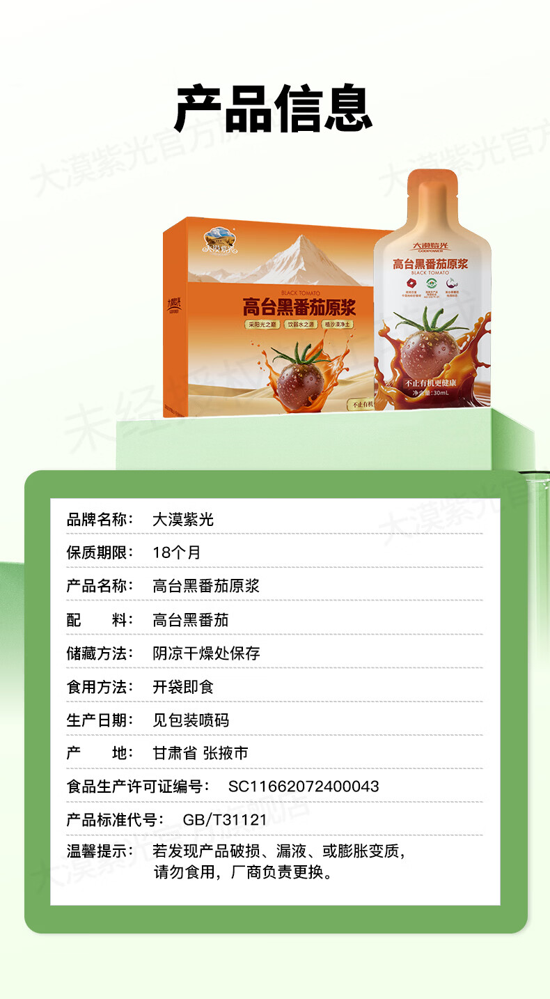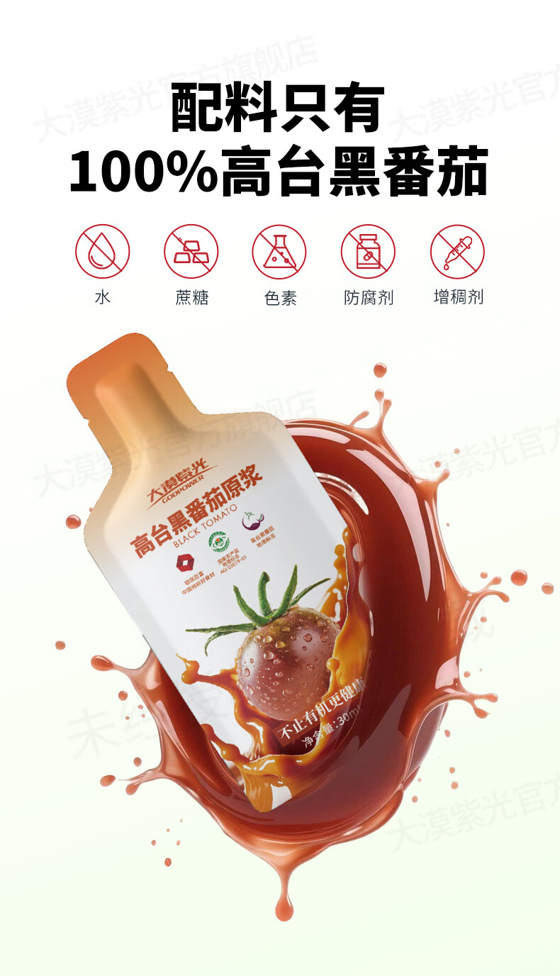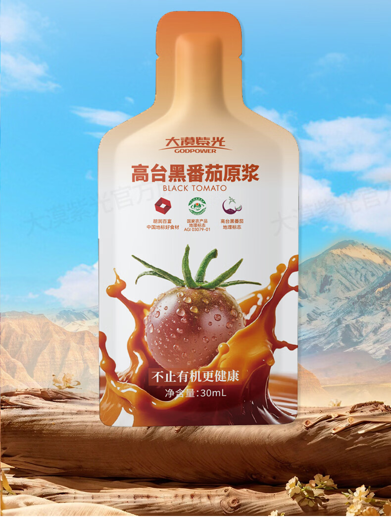 大漠紫光沙漠100%黑番茄原浆 含原花青素纯水果汁饮品饮料30ml*15袋 【送礼复购推荐】黑番茄原浆2大盒+送5袋共35袋