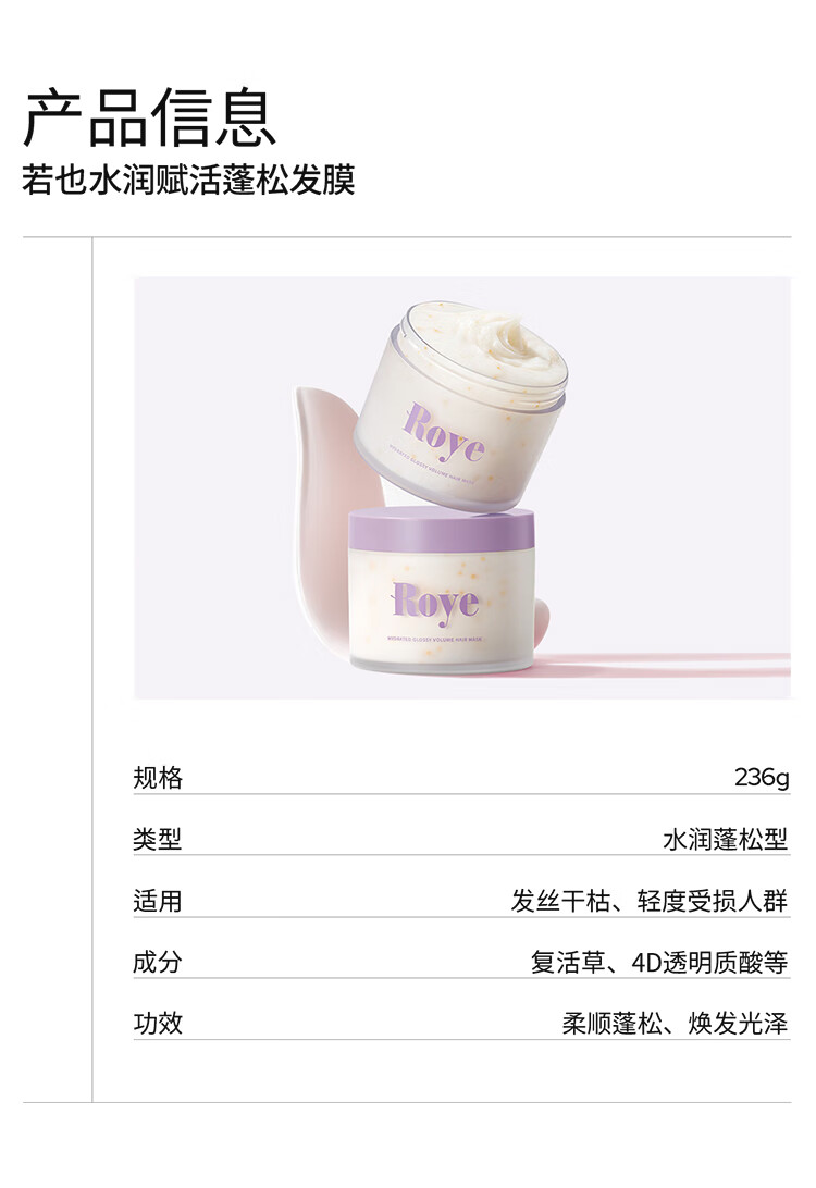roye若也【龚俊同款】复活草发膜柔顺蓬松发丝改善毛躁滋润 236g