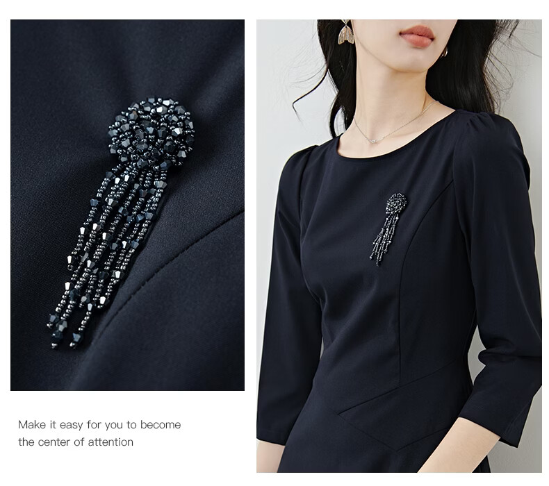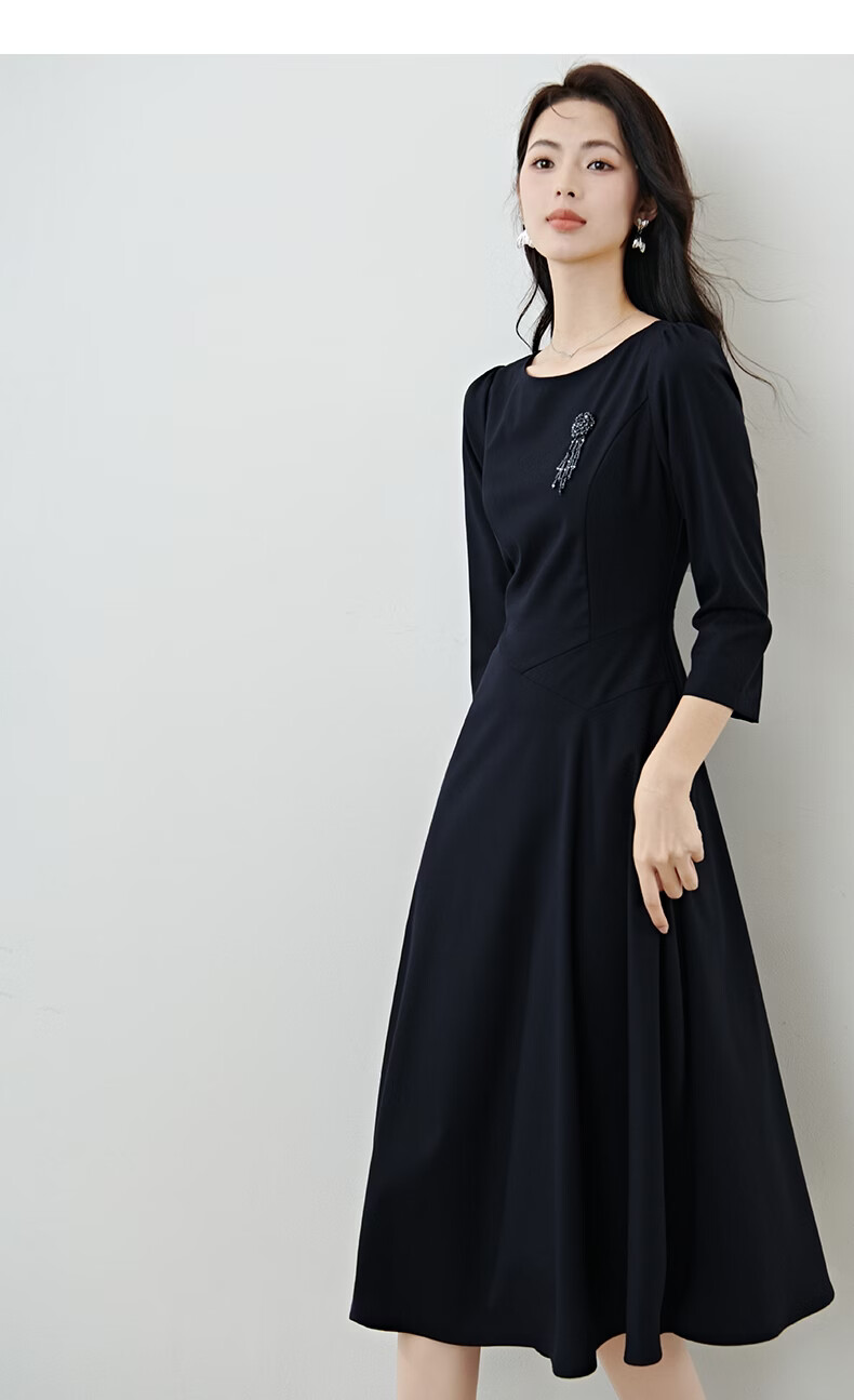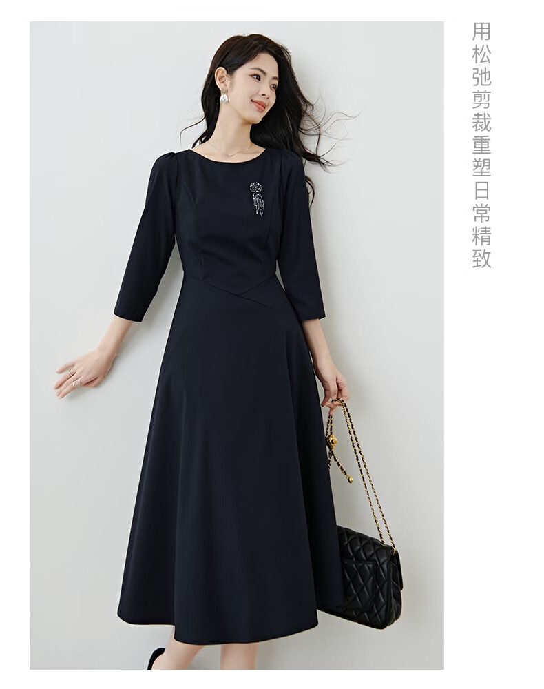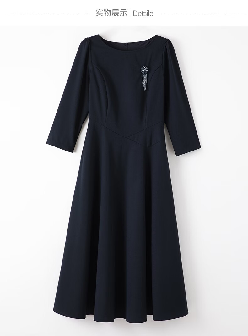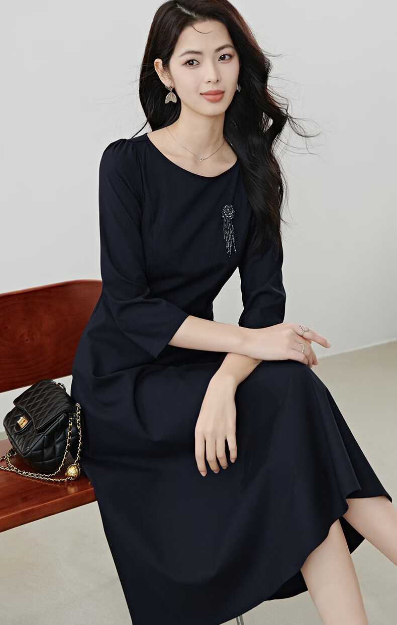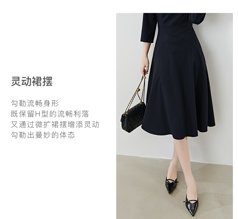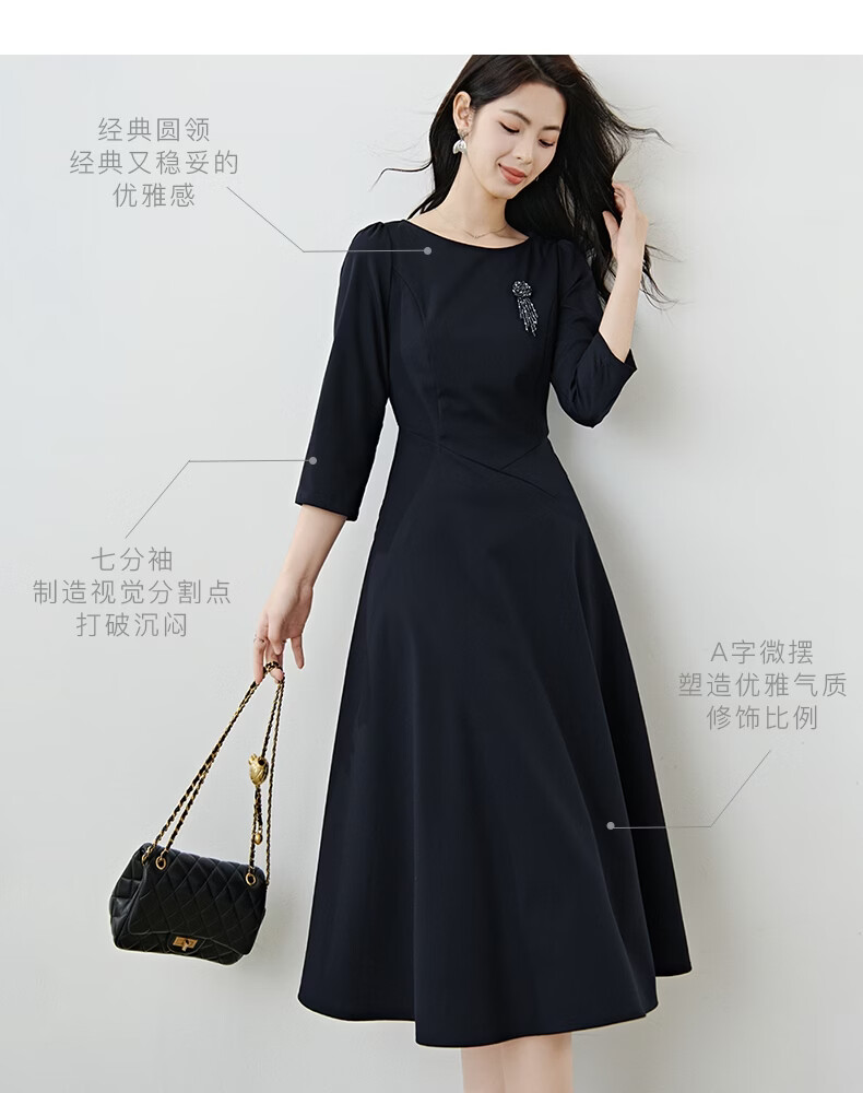 晚白【新品】2026春款正式场合穿搭裙子挺括利落收腰显瘦垂坠感连衣裙 深蓝色 S