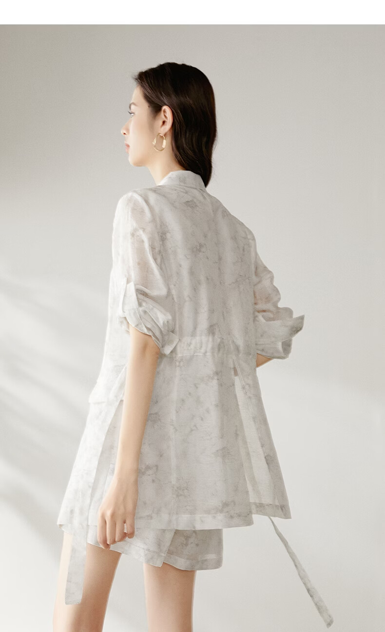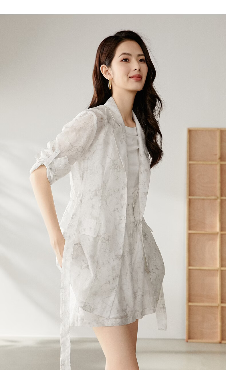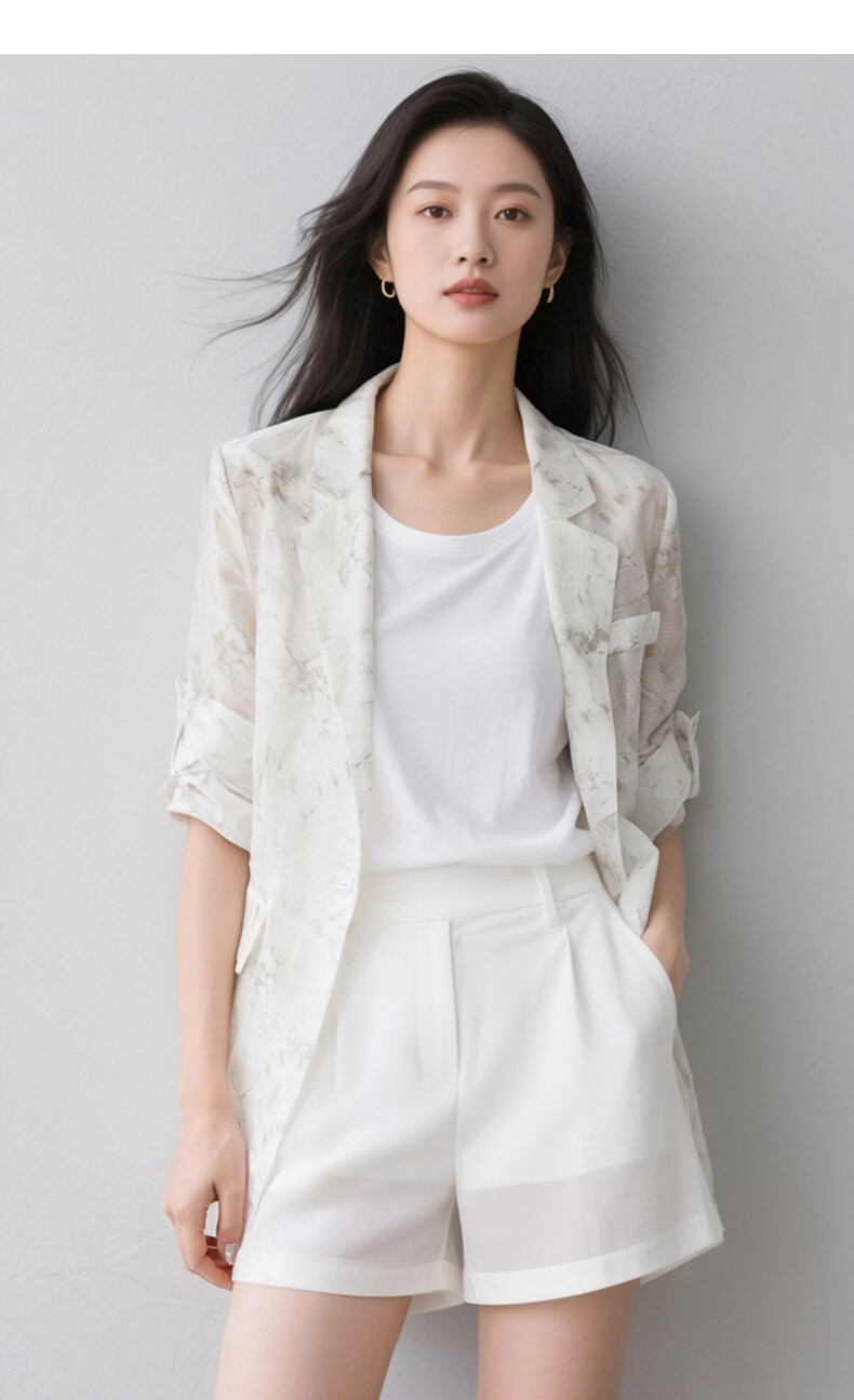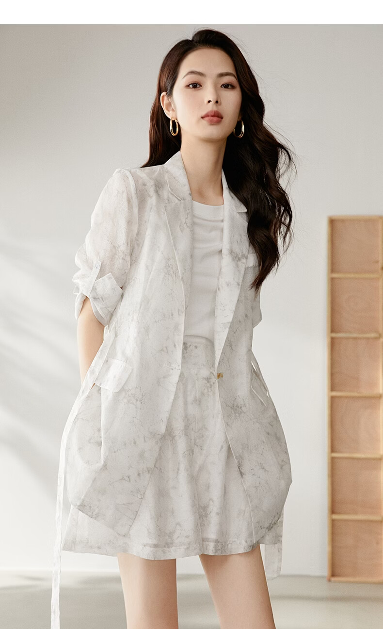晚白【新品】2026年春款时尚气质上衣休闲大码莱赛尔印花轻薄西装女 花色 L
