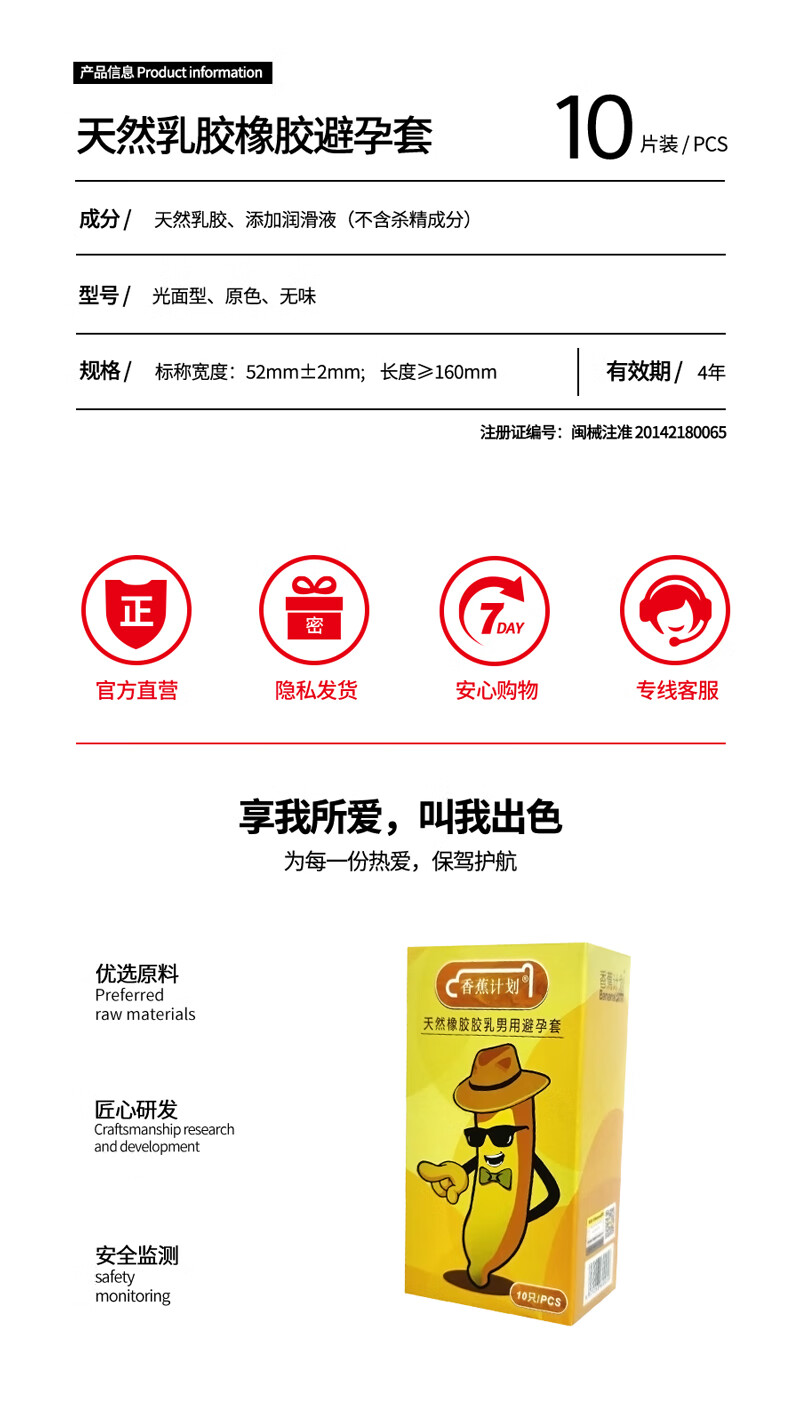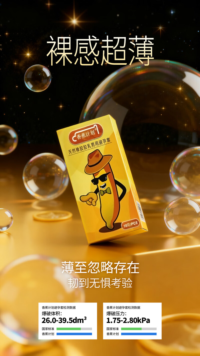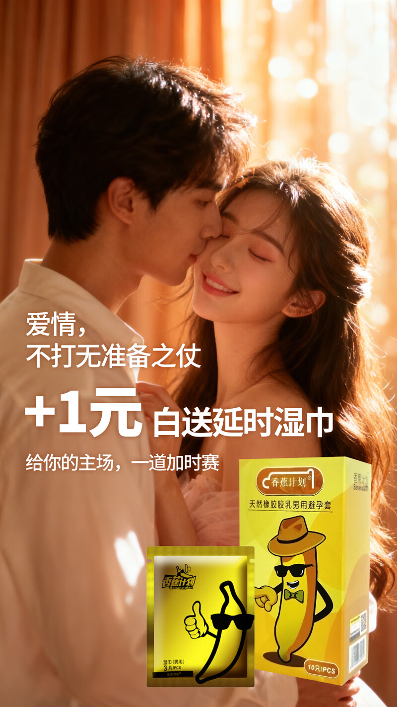 香蕉计划 超薄裸感避孕套 玻尿酸水润 经典款 正品可查 赠19.9元湿巾3片 1盒经典款(10只)+1袋湿巾(3片)