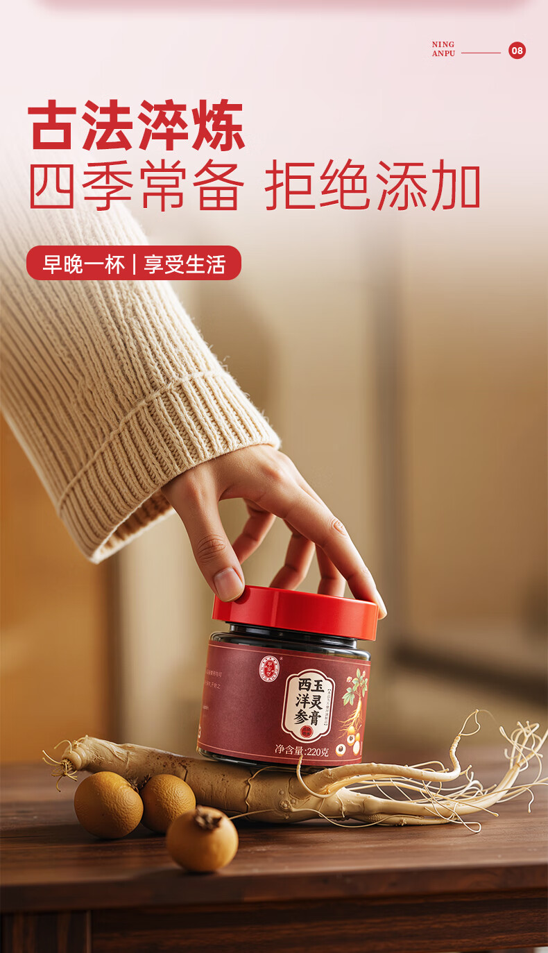 宁安堡西洋参片 长白山原产花旗参整枝足龄老参切片红参皂苷磨 【大片】西洋参 200g*1罐