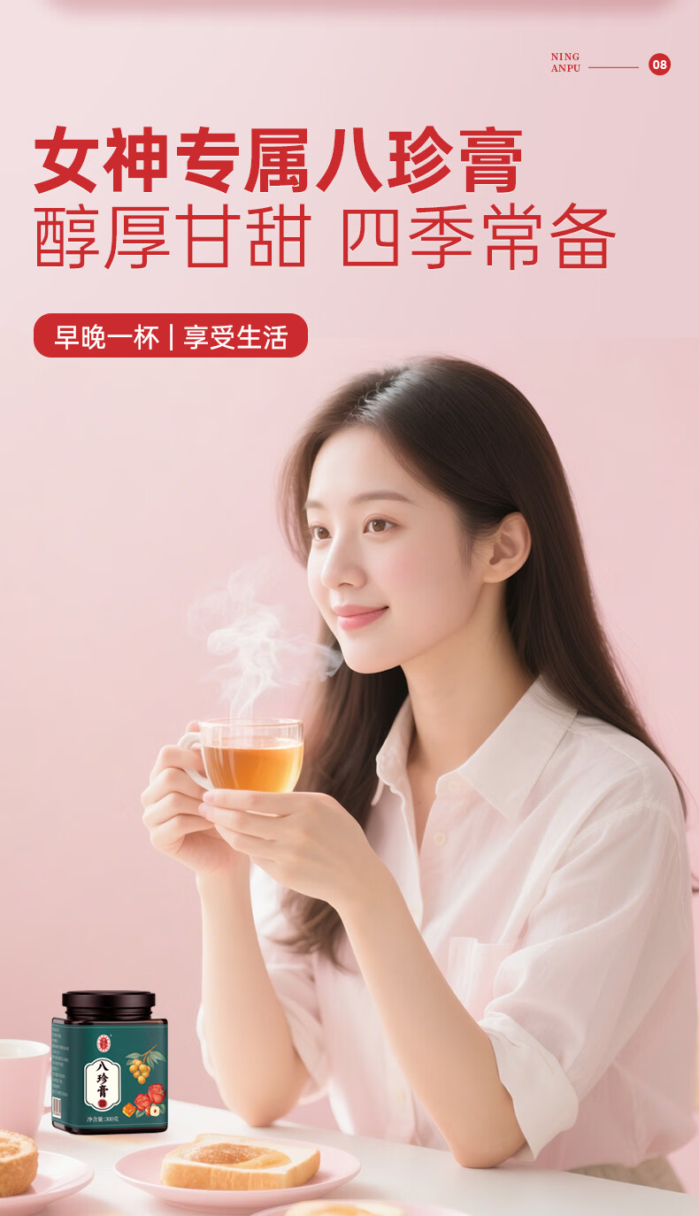 效立安杜江南暖膏红参阿胶姜枣膏红枣枸杞桂圆麦冬姨妈伴侣阿胶膏熬制膏 【双人月套餐】 7支*8盒