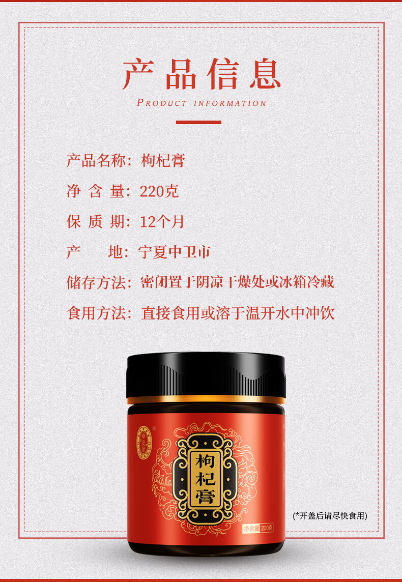 宁安堡枸杞膏 宁夏特产枸杞 强男肾养生滋补泡水 枸杞膏 220g*1罐