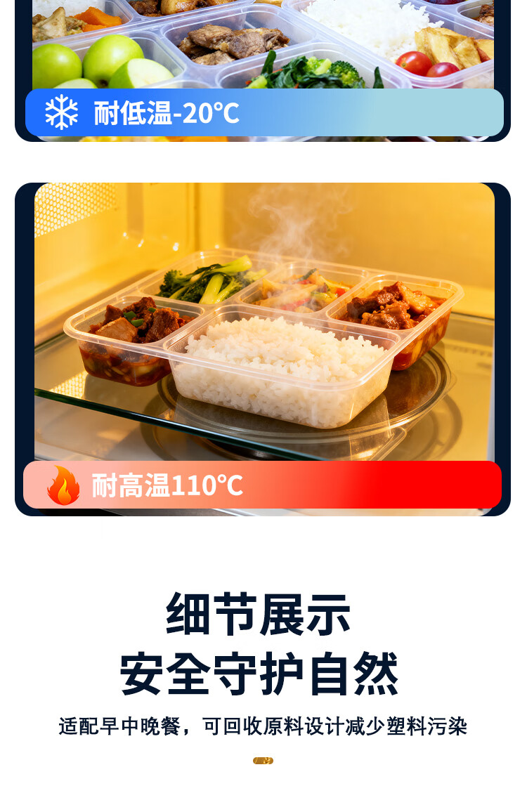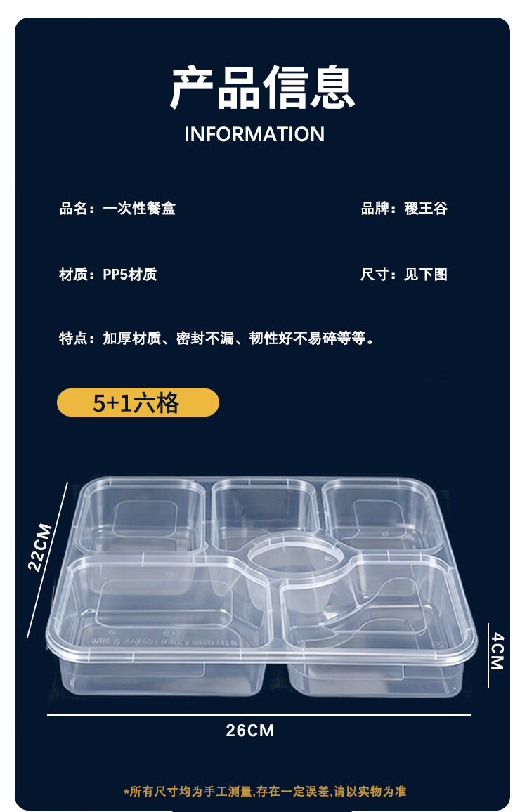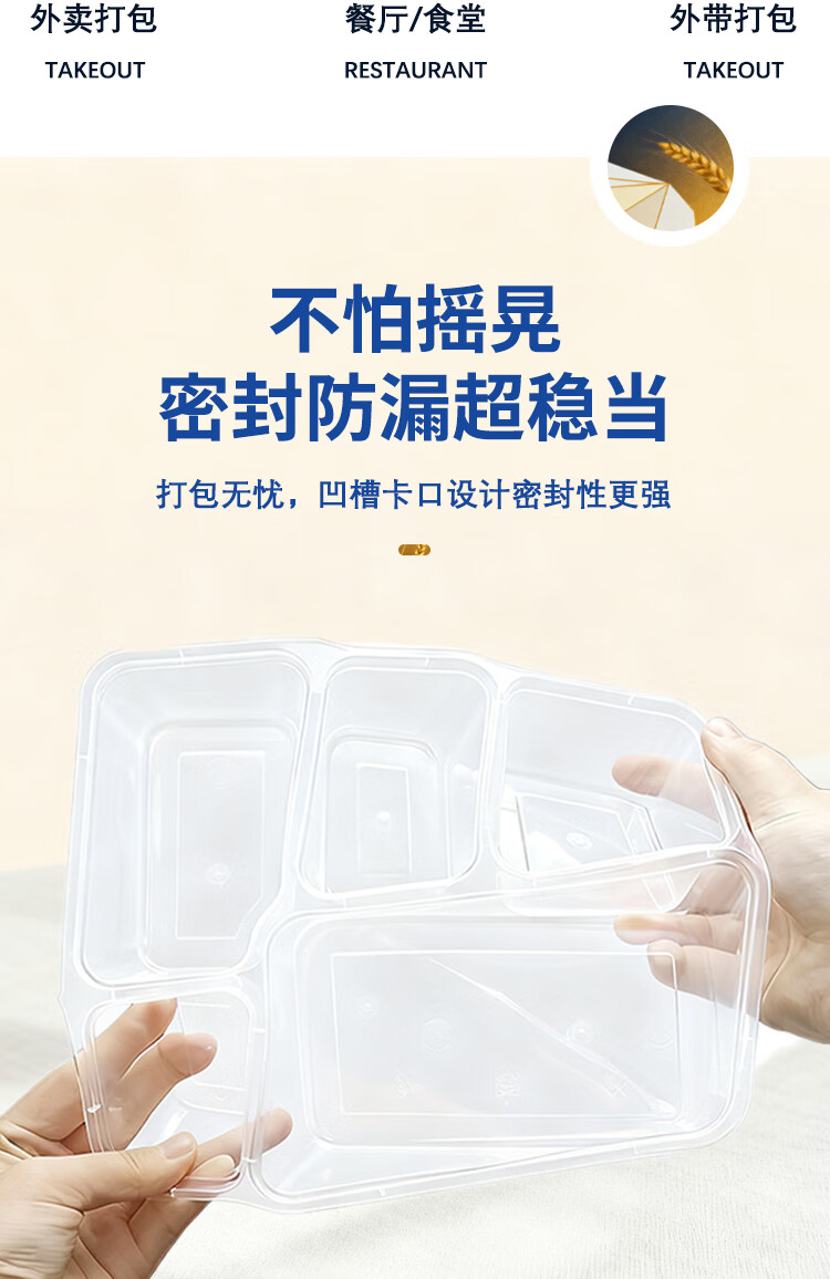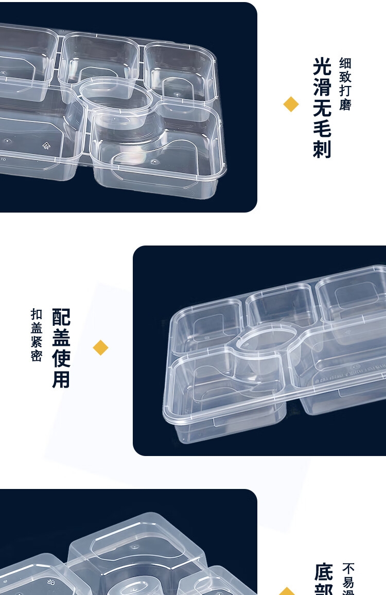 稷王谷1400ml平盖六格餐盒一次性饭盒多格外卖打包盒食品级带盖可微波 【六格餐盒】150套装