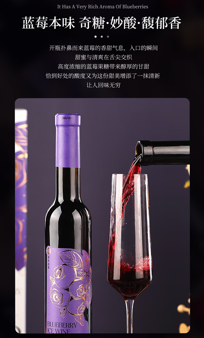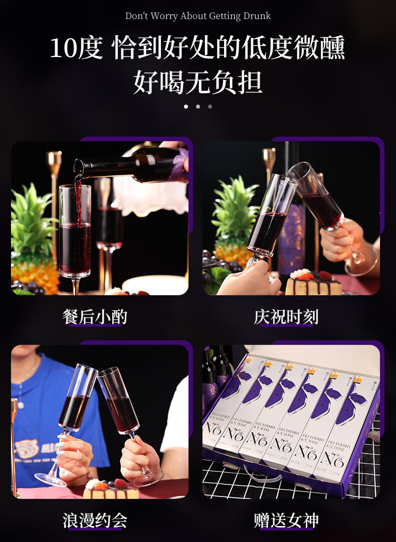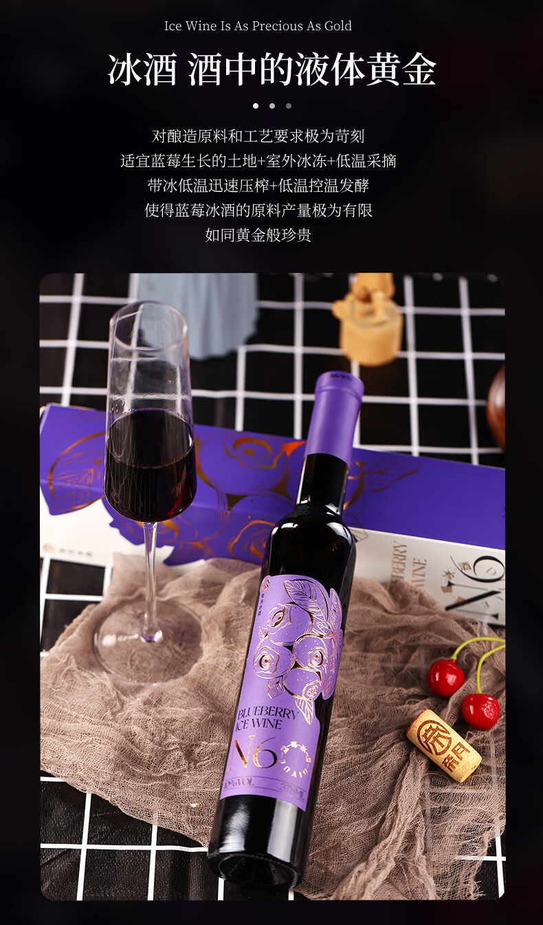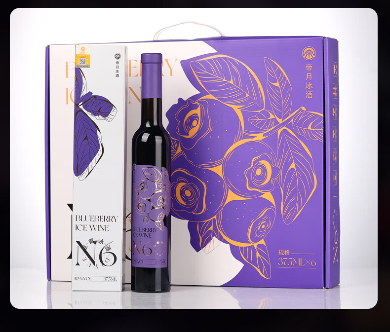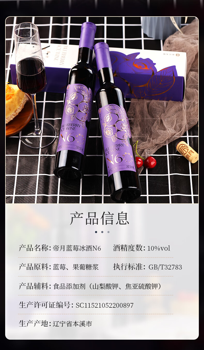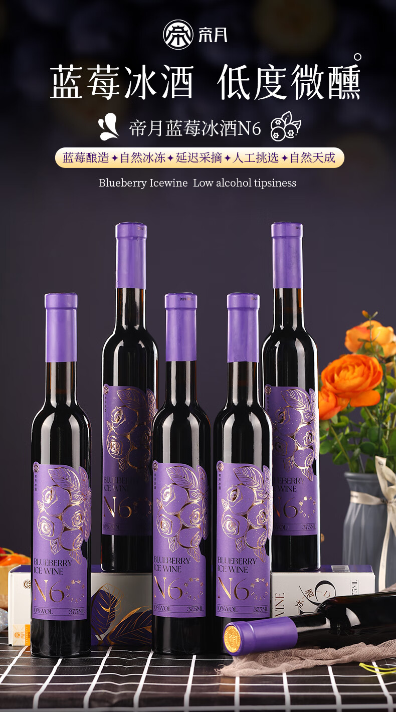 帝月蓝莓冰酒N6低度国产红酒微醺女士甜型果酒瓶装聚会自饮年货送礼盒 冰酒N6 375ml*6瓶 【赠开瓶器】