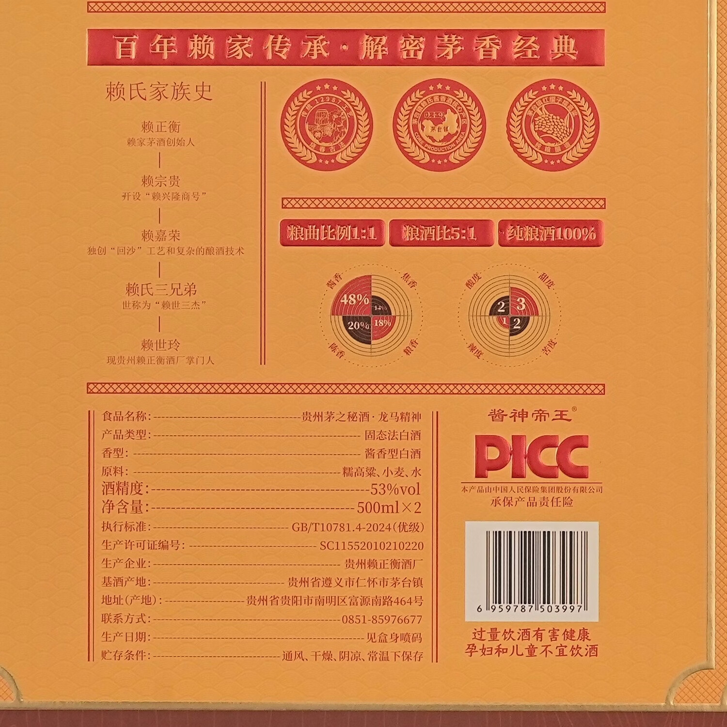 毕节龙腾世纪 贵州老字号 纯粮酱香型白酒 起源1942年酒厂 53%vol 500mL 1瓶 礼盒装 赠礼袋