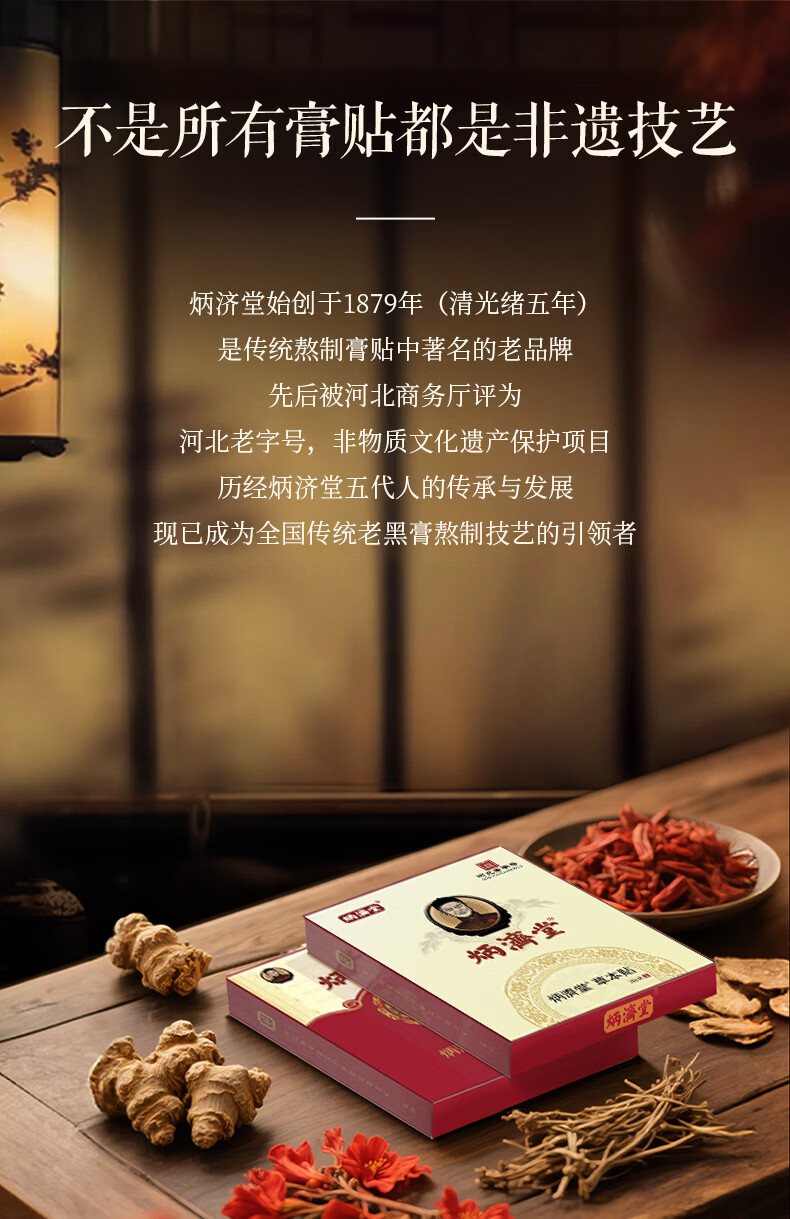炳济堂骨康贴颈椎腰椎间盘腿膝盖通用非遗老黑膏药贴关节肩周膏贴 无纺布款1盒6贴(体验装)