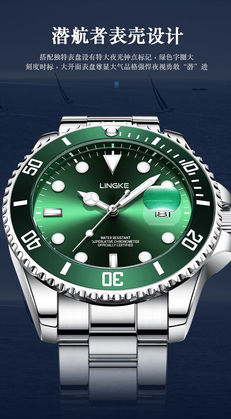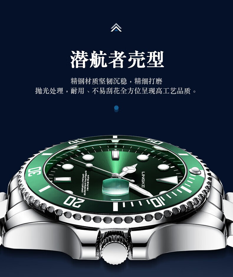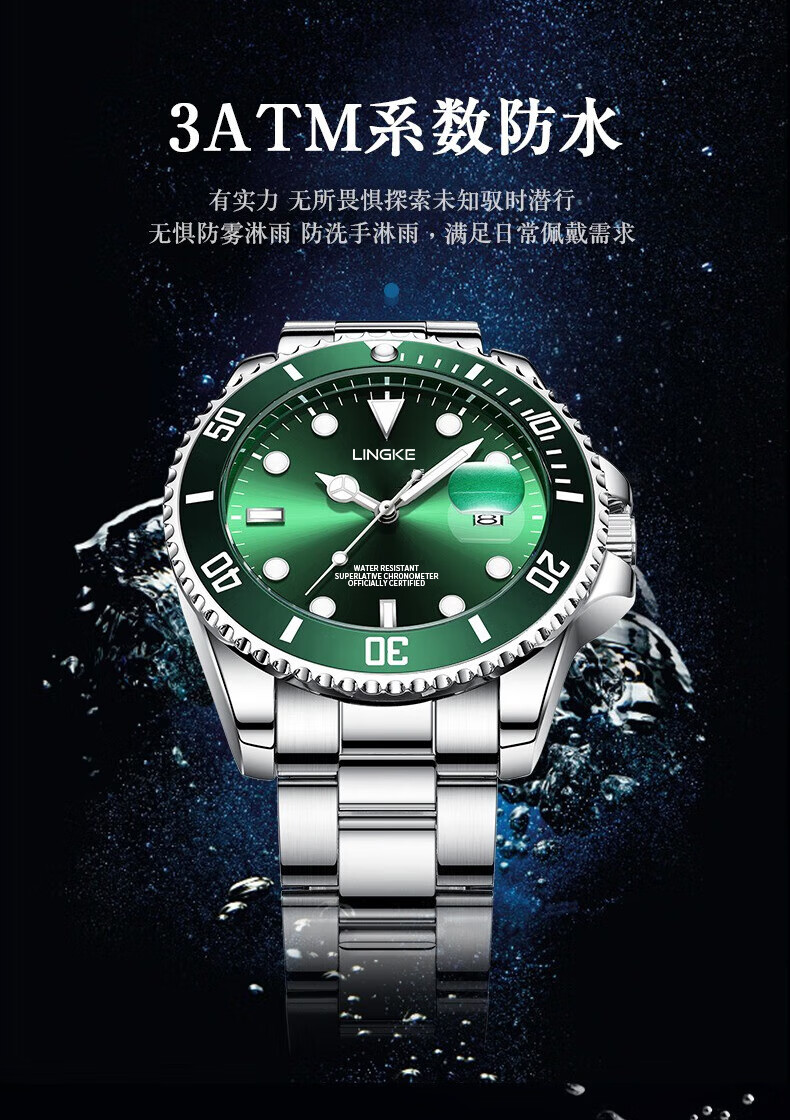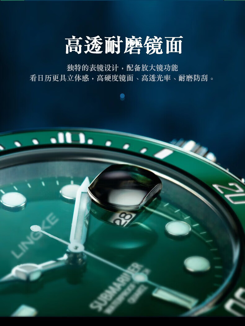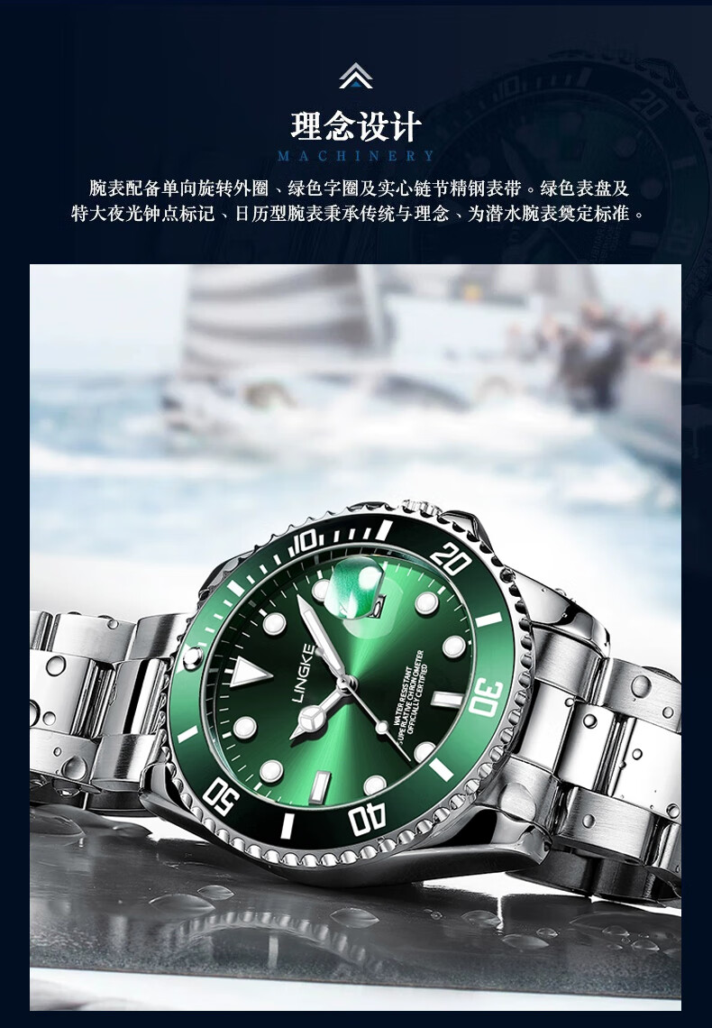 凌刻缘水鬼手表男士男款全自动非机械表名表石英十大品牌防水夜光礼物 LK8686黑色 42mm