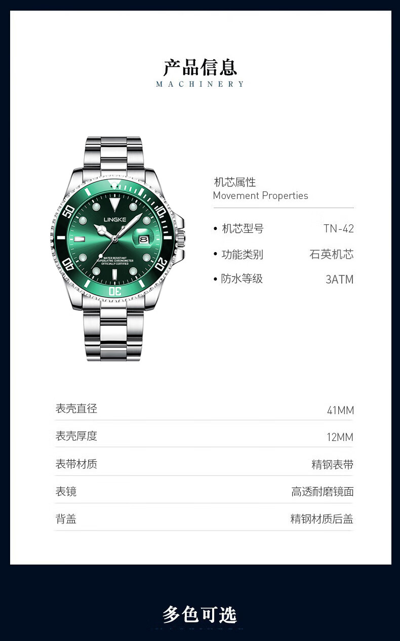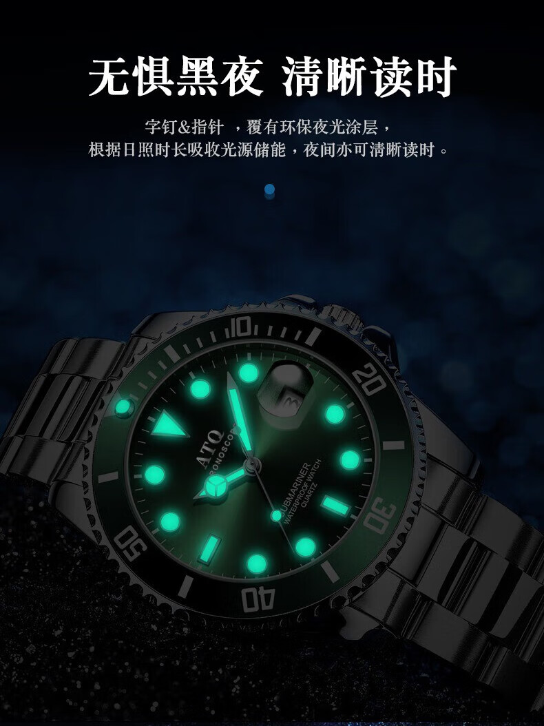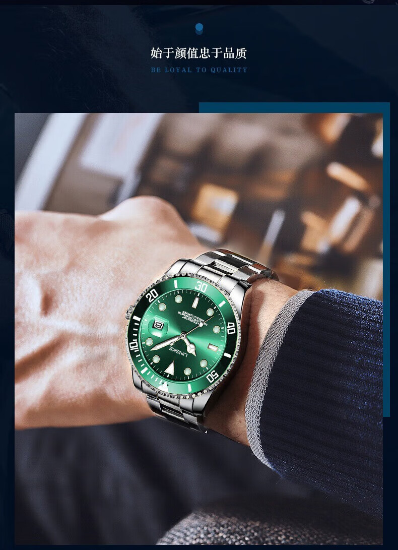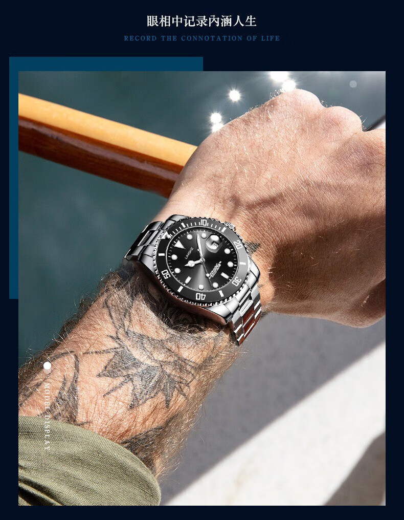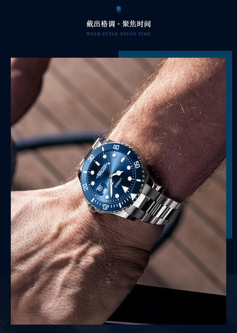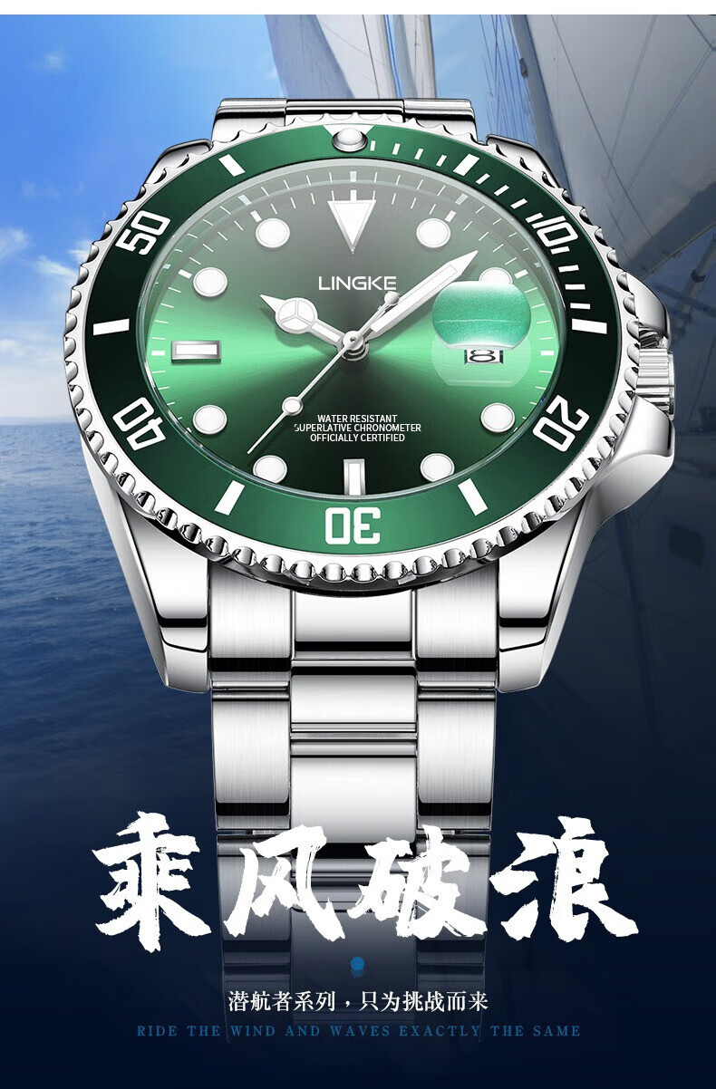 凌刻缘水鬼手表男士男款全自动非机械表名表石英十大品牌防水夜光礼物 LK8686黑色 42mm