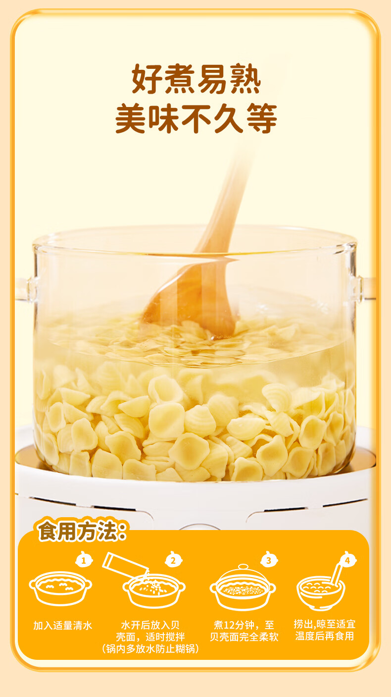 婴享 无麸质面条贝壳面粒粒面造型面营养早餐面食送婴幼儿宝宝辅食谱