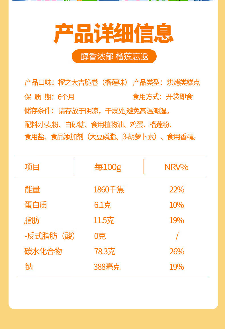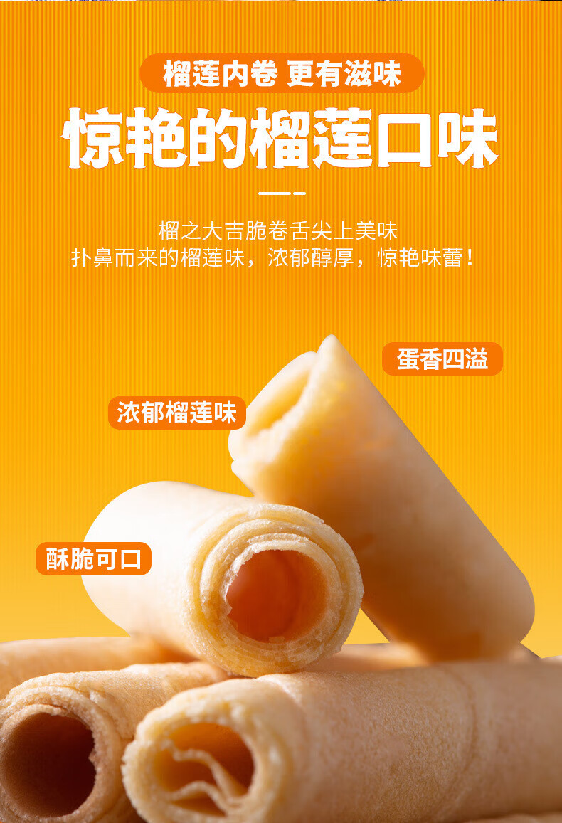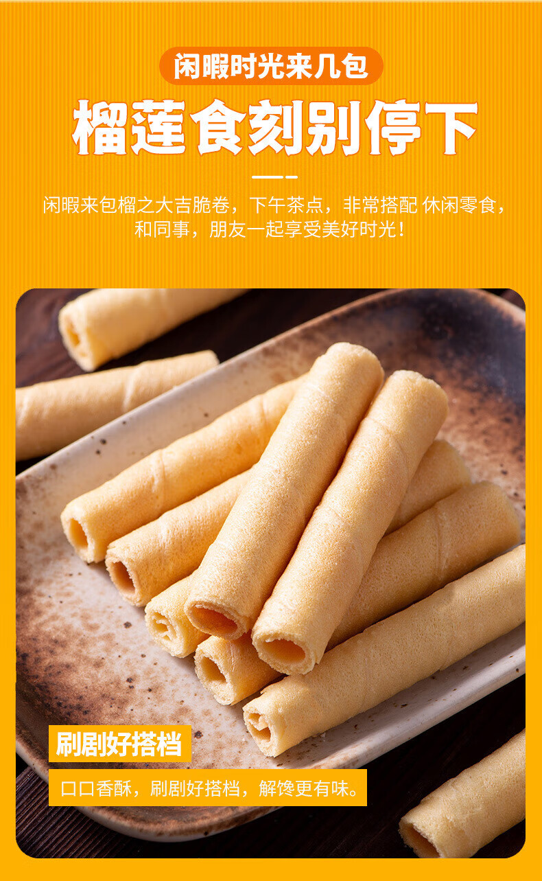 【实惠】蛋卷榴莲味卷心酥饼干解馋好吃的零食小吃休闲食品茶 【榴莲卷】10包*6支