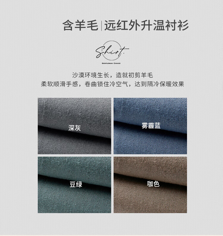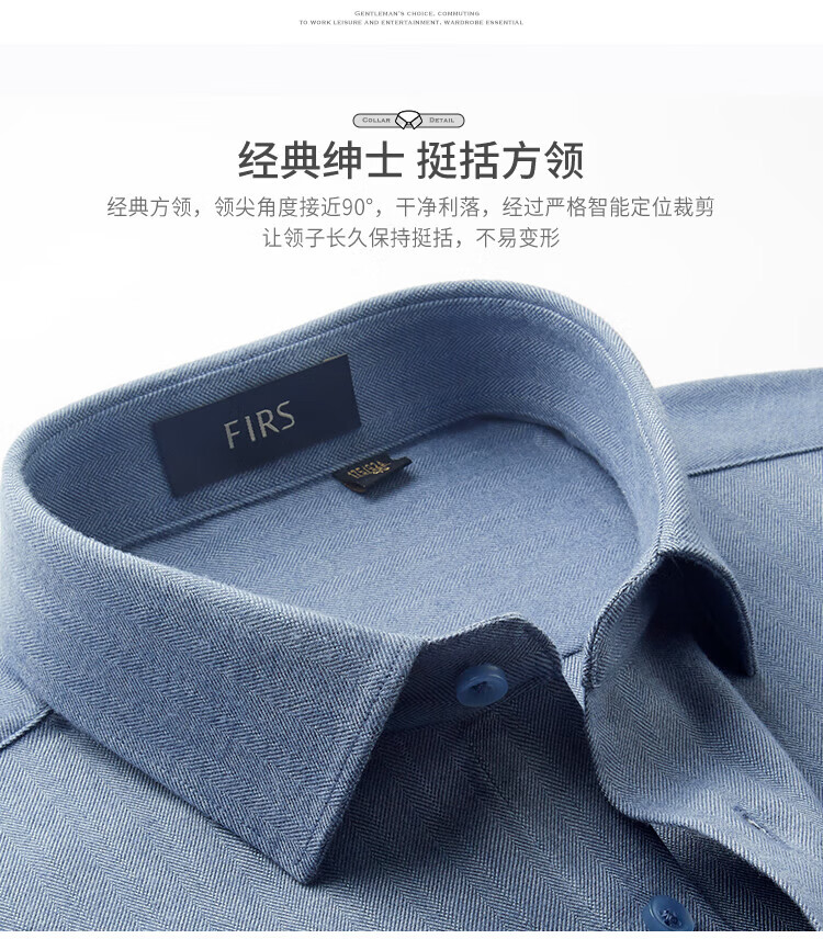 杉杉(FIRS)长袖衬衫男春秋款羊毛保暖磨毛加厚防寒衬衣抗皱顺滑亲肤柔软上衣 深灰 39 (170) 88A