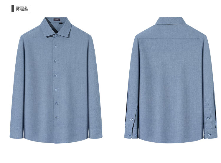 SHANSHAN杉杉【棉+亚麻+竹纤维】长袖衬衫男春季10A抗菌商务休闲男士衬衣 雾霾蓝 38 /170