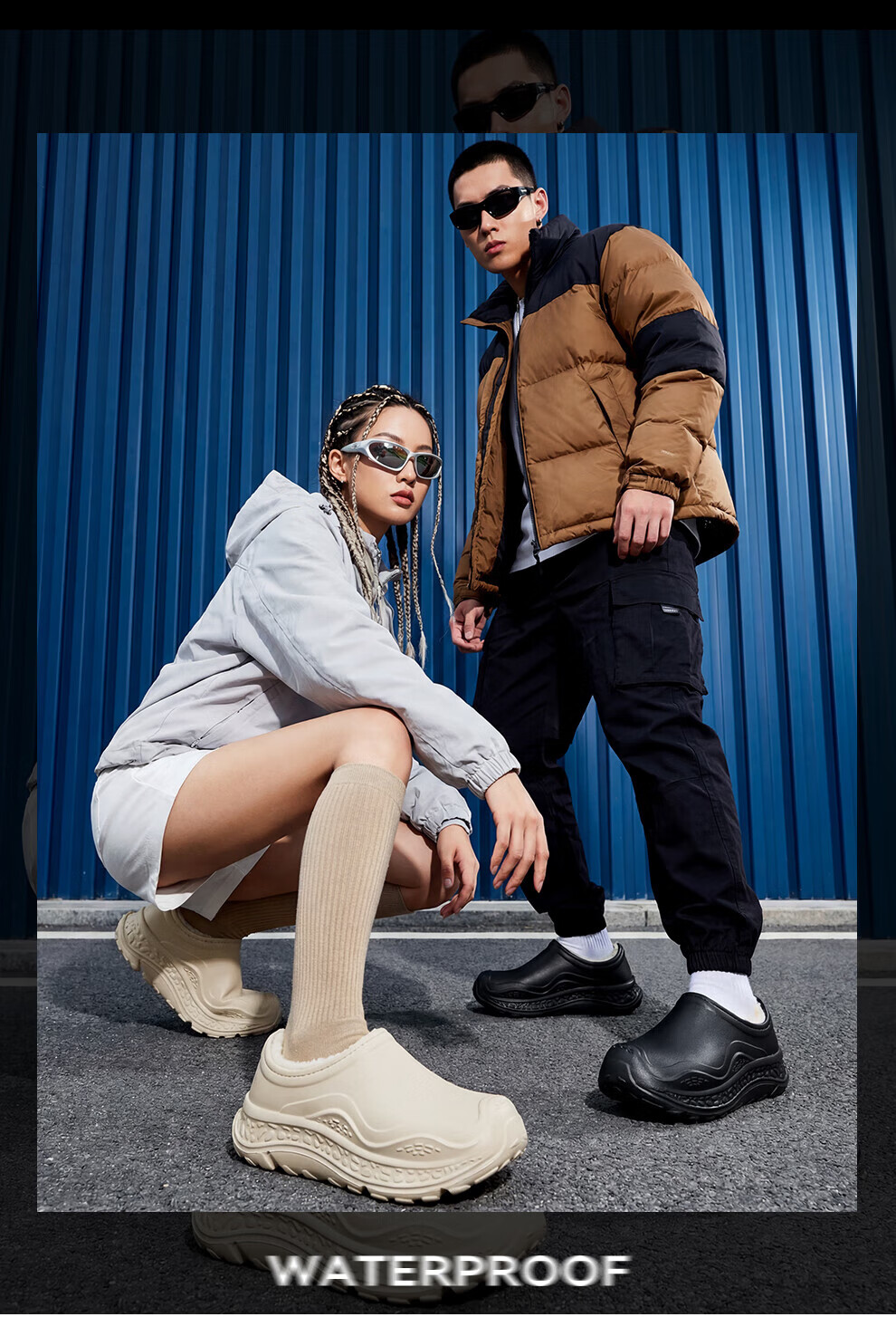 FZT防水百搭棉拖鞋女士秋冬季2025新款厚底增高毛绒保暖包跟棉拖鞋男 浅棕色 35-36 标准码