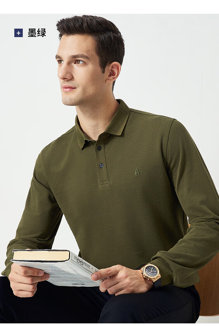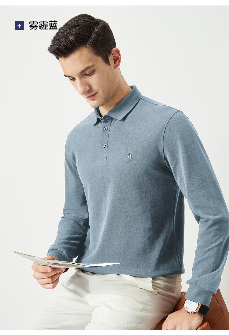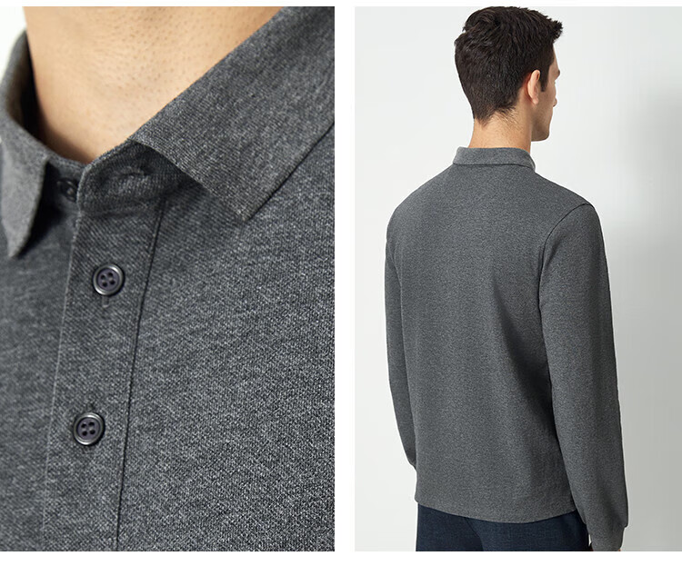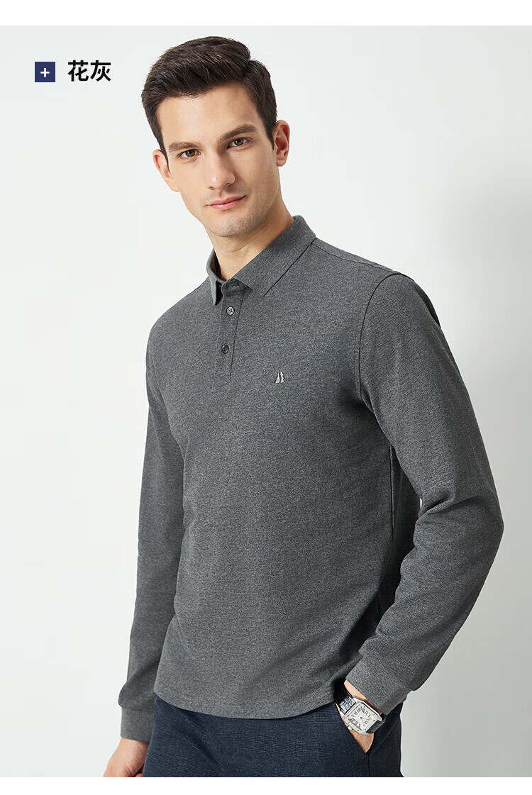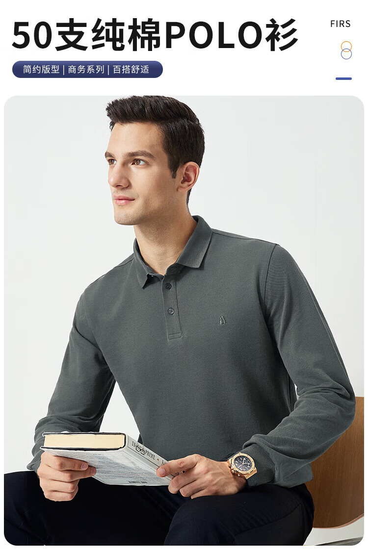 杉杉(FIRS)新年长袖POLO衫男春秋新款商务休闲打底柔软亲肤透气中年体恤男装 铁灰色-纯棉 XL (180/96A)