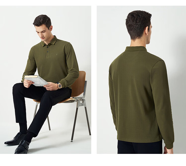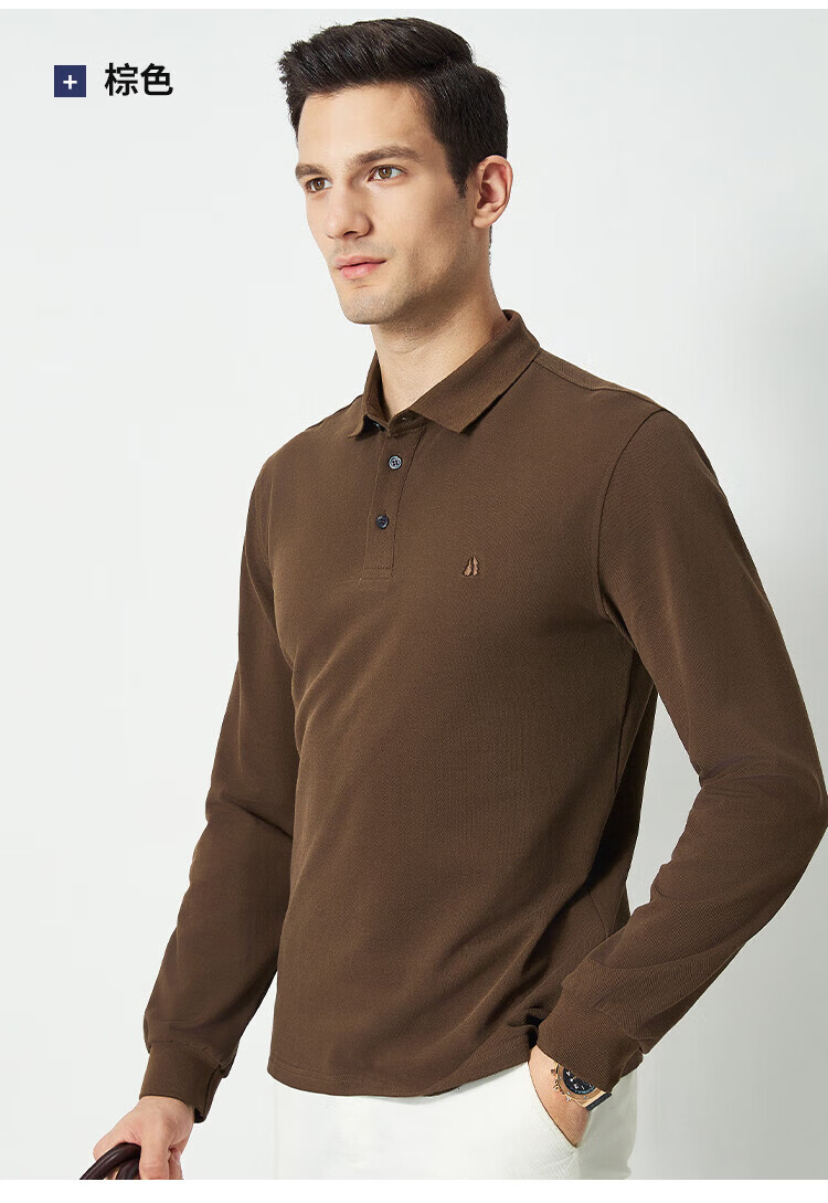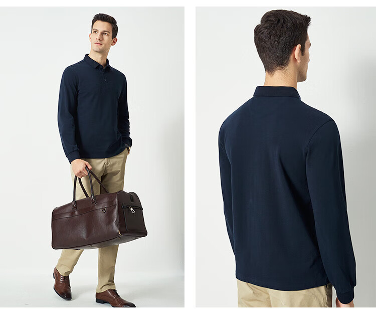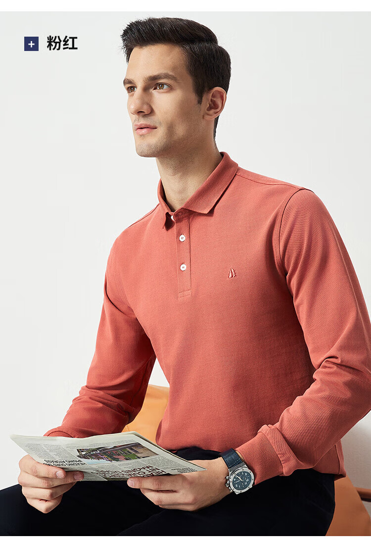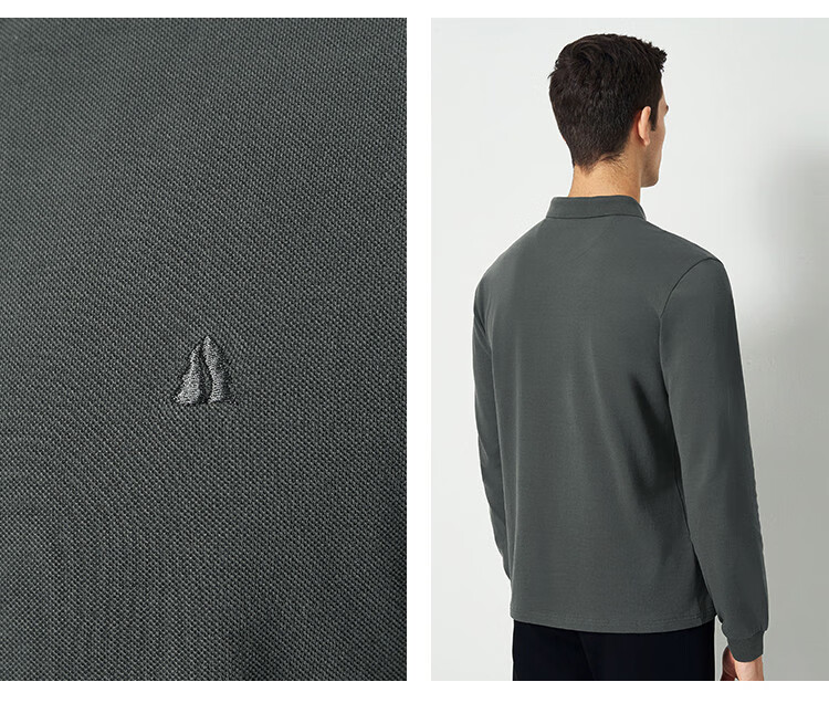 杉杉(FIRS)新年长袖POLO衫男春秋新款商务休闲打底柔软亲肤透气中年体恤男装 铁灰色-纯棉 XL (180/96A)
