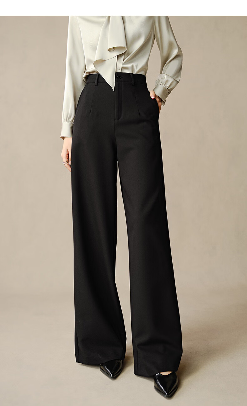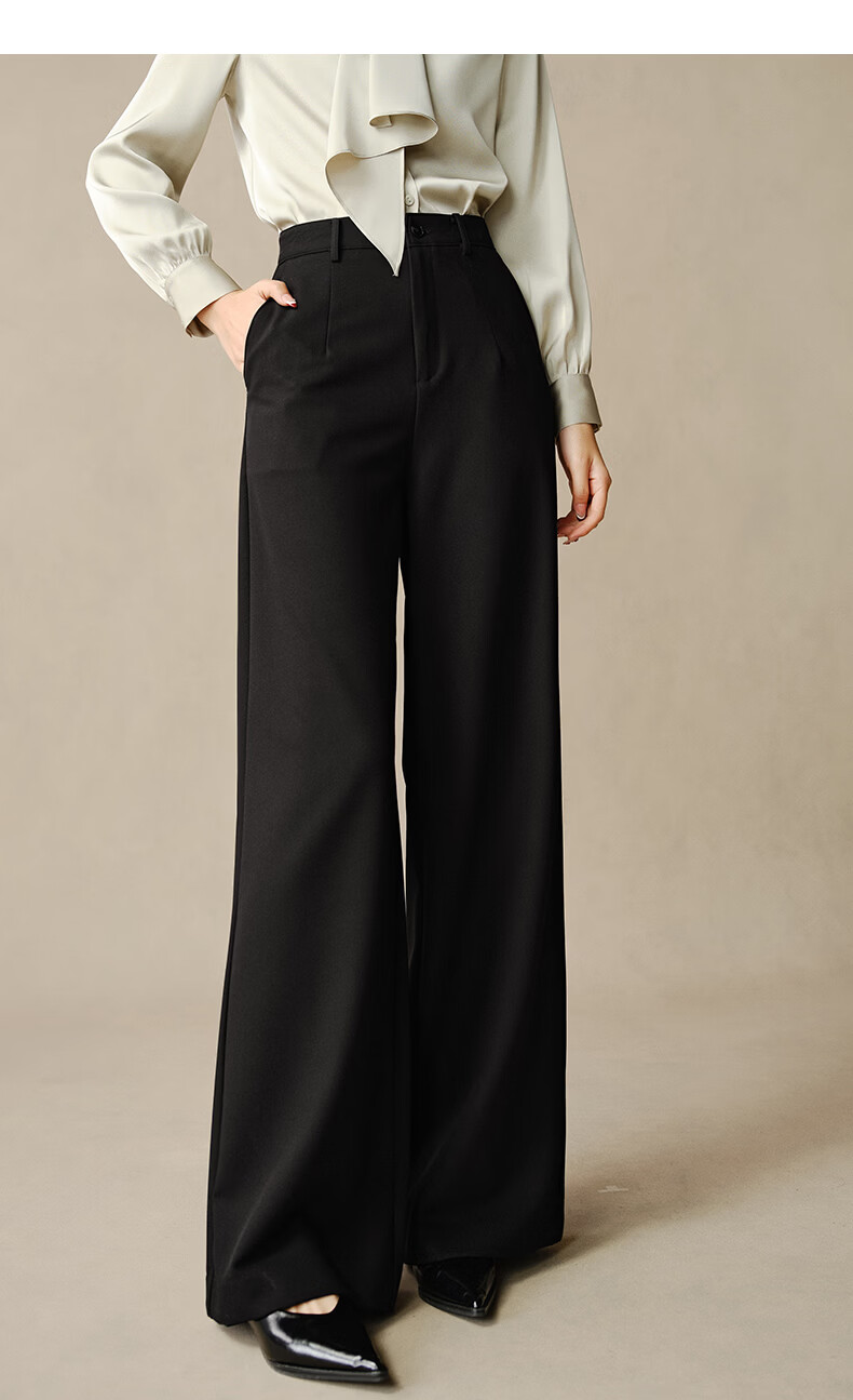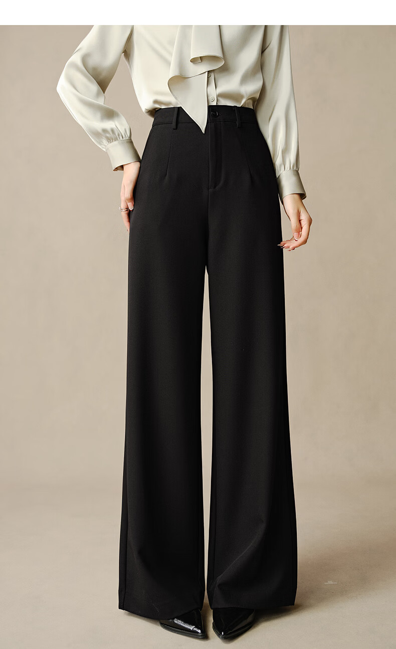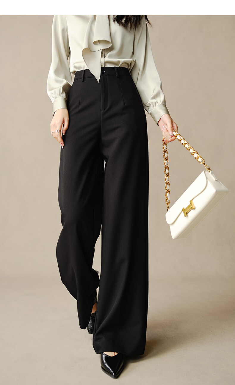 晚白【新品】2026春款经典高腰裤子遮胯显瘦利落通勤阔腿裤女 黑色 28
