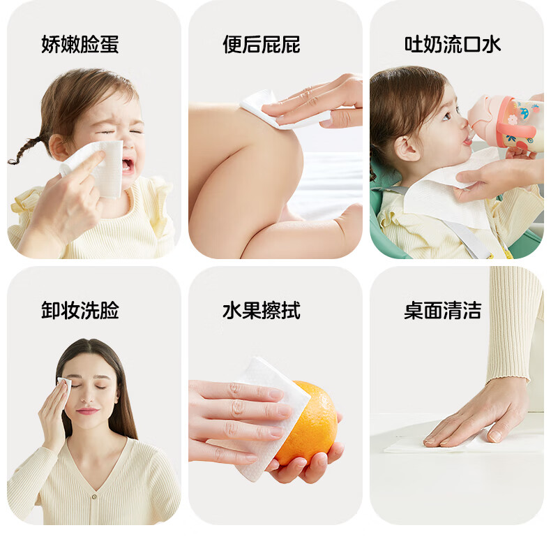 可优比(KUB)洗脸巾干湿两用一次性绵柔巾洁面卸妆擦脸巾抽取式 100抽 6包