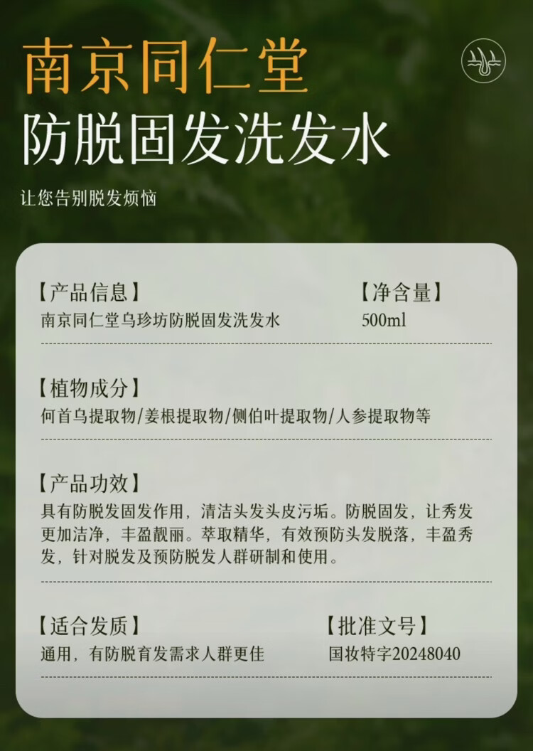 乌珍坊防脱固发洗发水护发控油蓬松去屑防脱固发洗发水控油去屑止痒 防脱固发 500ml*1瓶