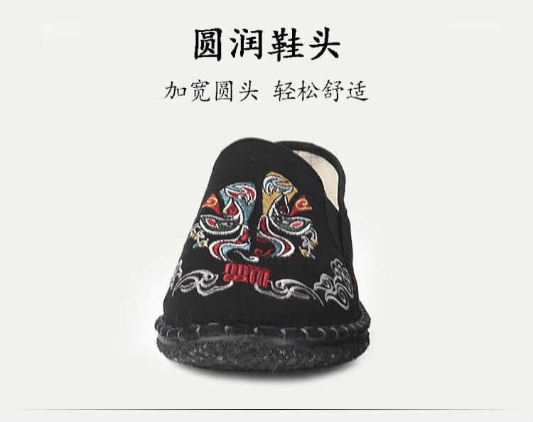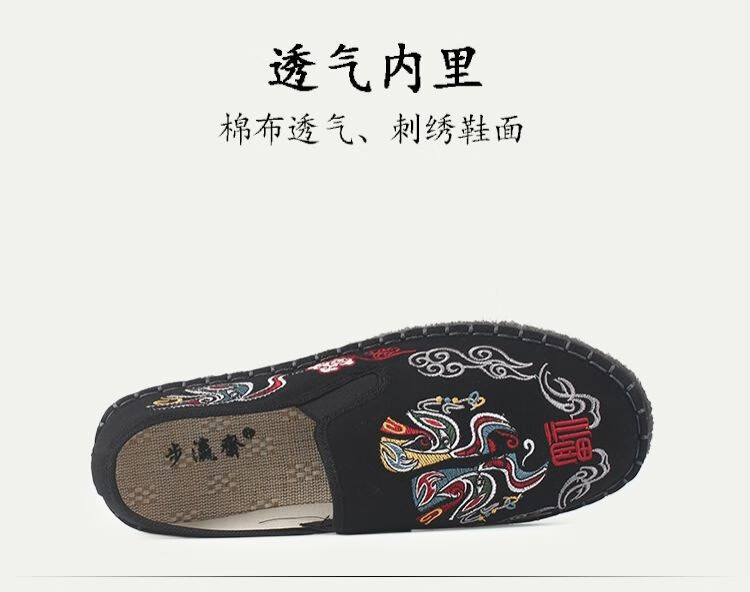 步瀛斋老北京布鞋一脚蹬懒人中国风国潮刺绣布鞋 休闲风 黑色 40
