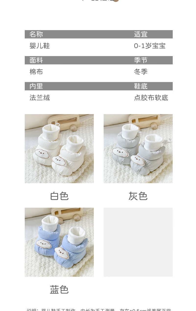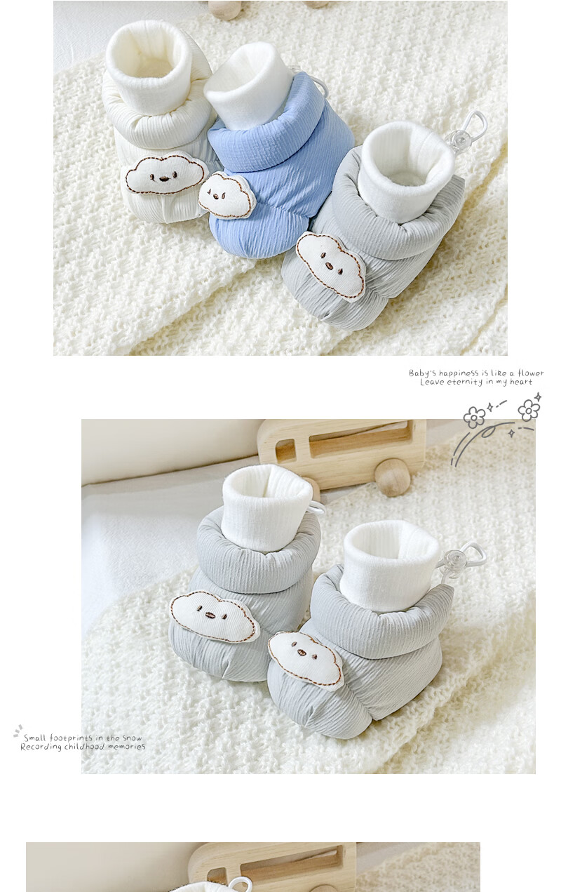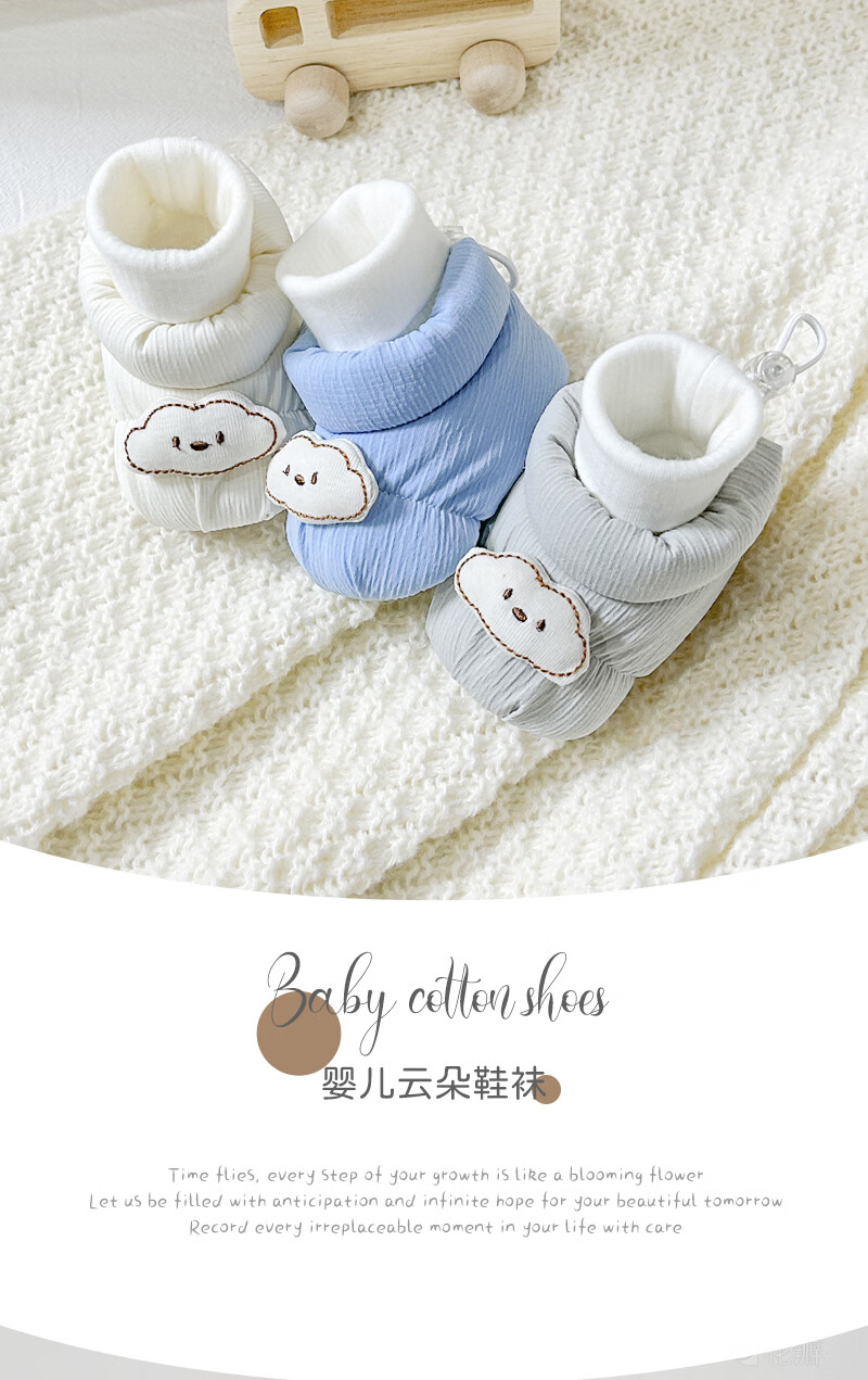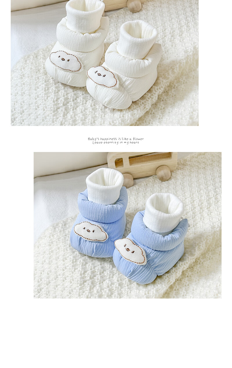秋冬0-1岁婴儿保暖棉鞋男女宝宝新生儿软底鞋防滑不掉步前鞋袜鞋6 蓝色云朵地板鞋冬加绒 加绒 12.5 L码6-12个月