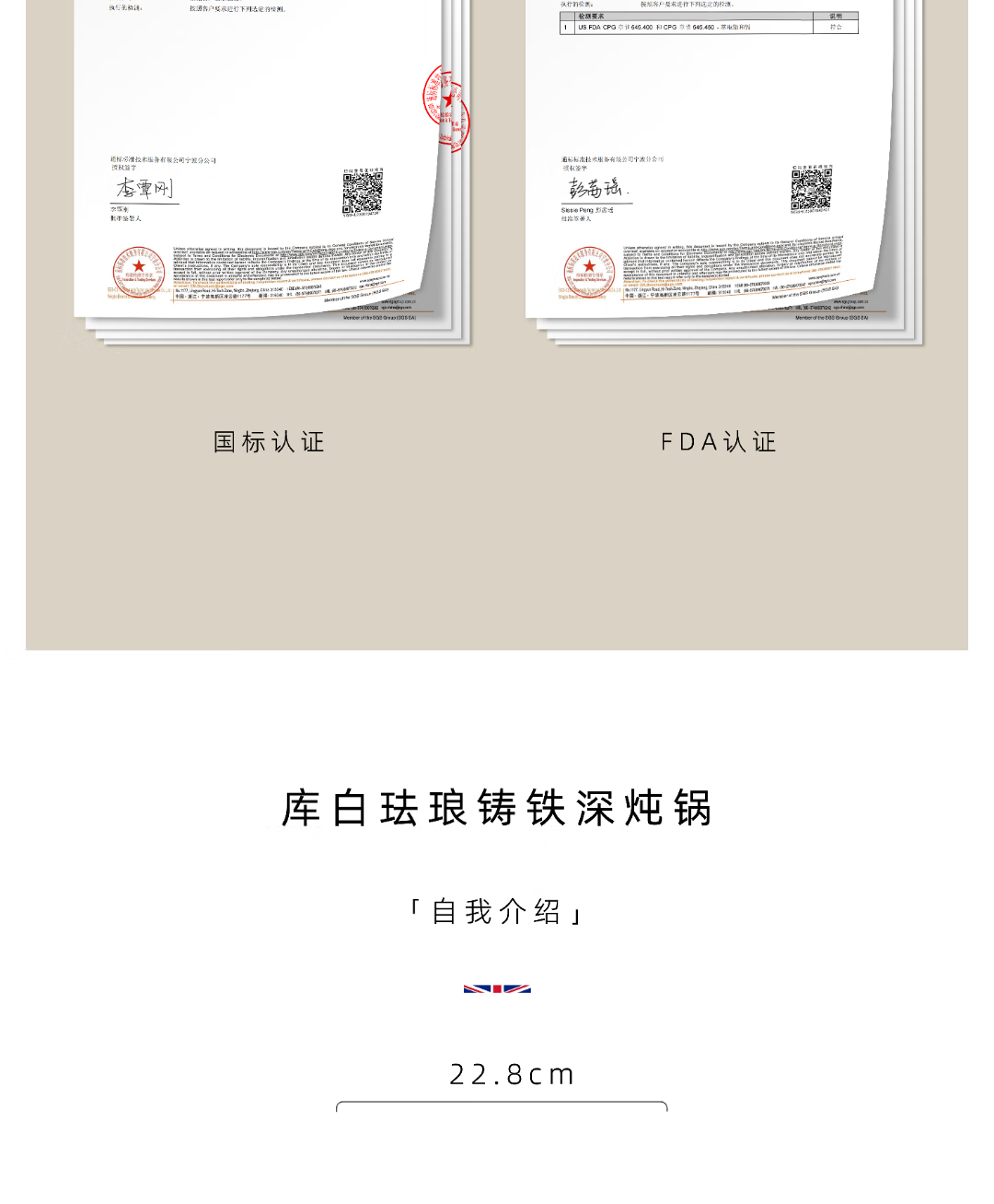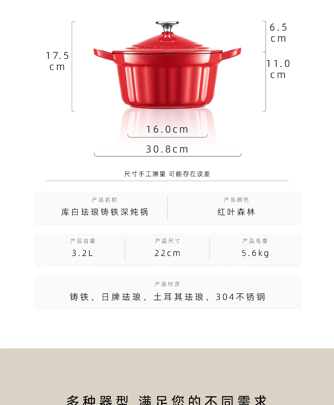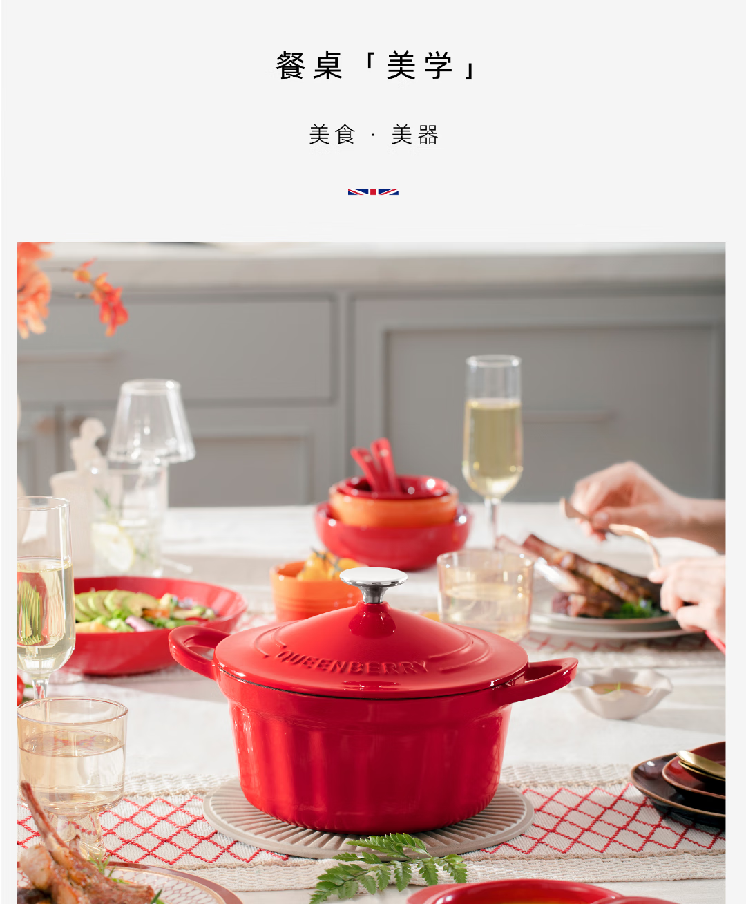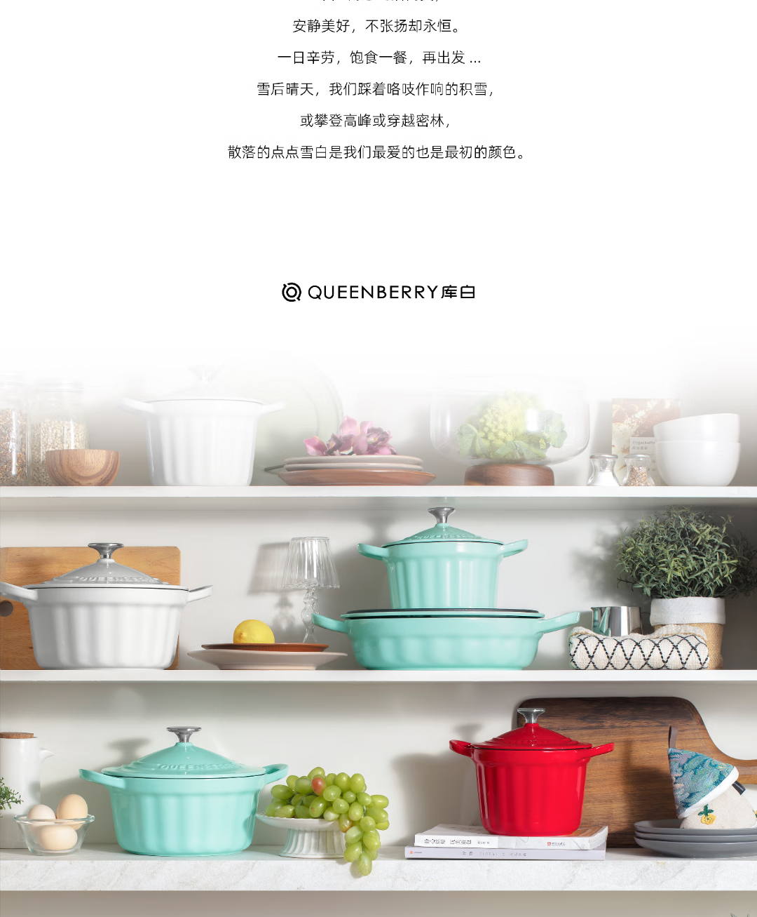 QUEENBERRY英国库白铸铁珐琅锅家用大容量深炖锅双耳汤锅多功能平底焖炖锅 「4-5人食」深炖锅-红叶森林 22cm