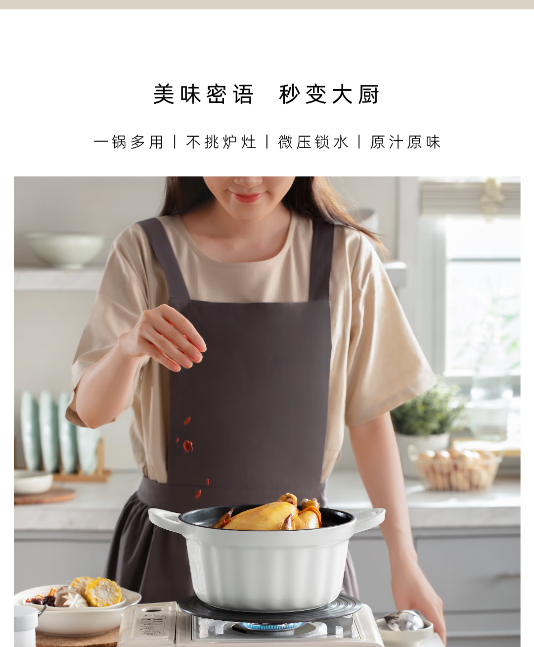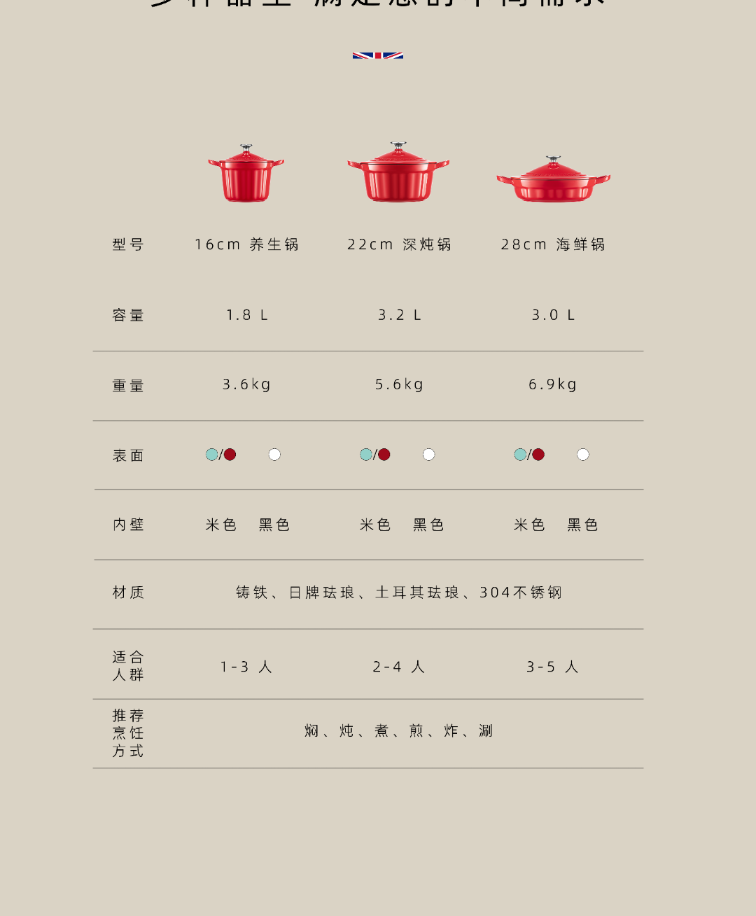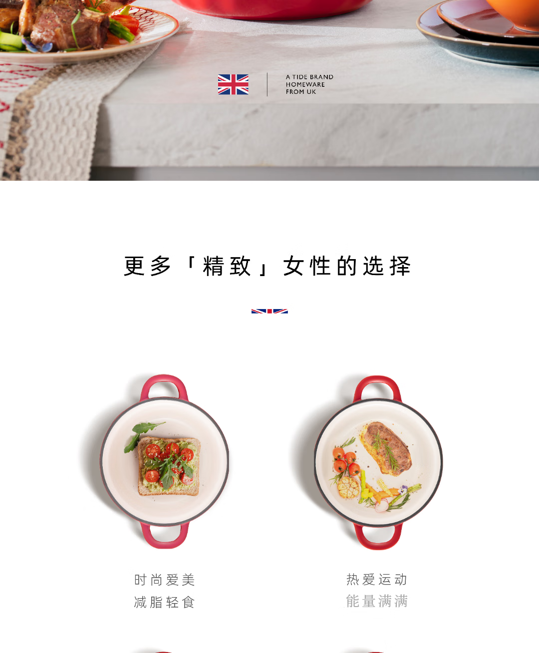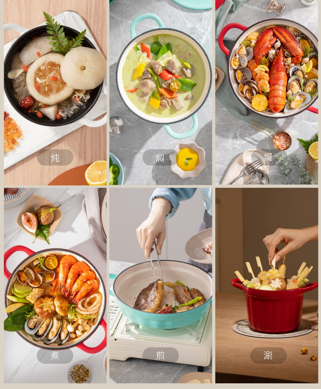 QUEENBERRY英国库白铸铁珐琅锅家用大容量深炖锅双耳汤锅多功能平底焖炖锅 「4-5人食」深炖锅-红叶森林 22cm