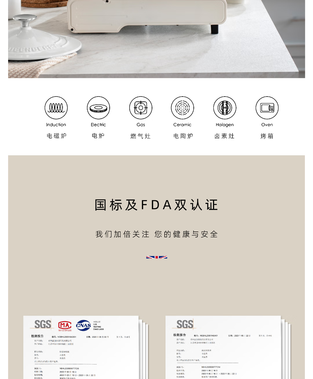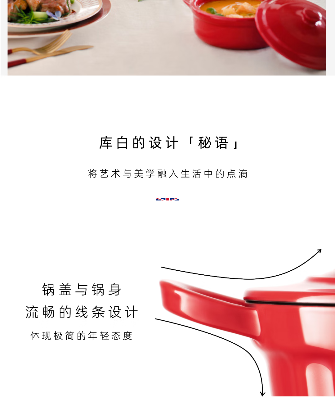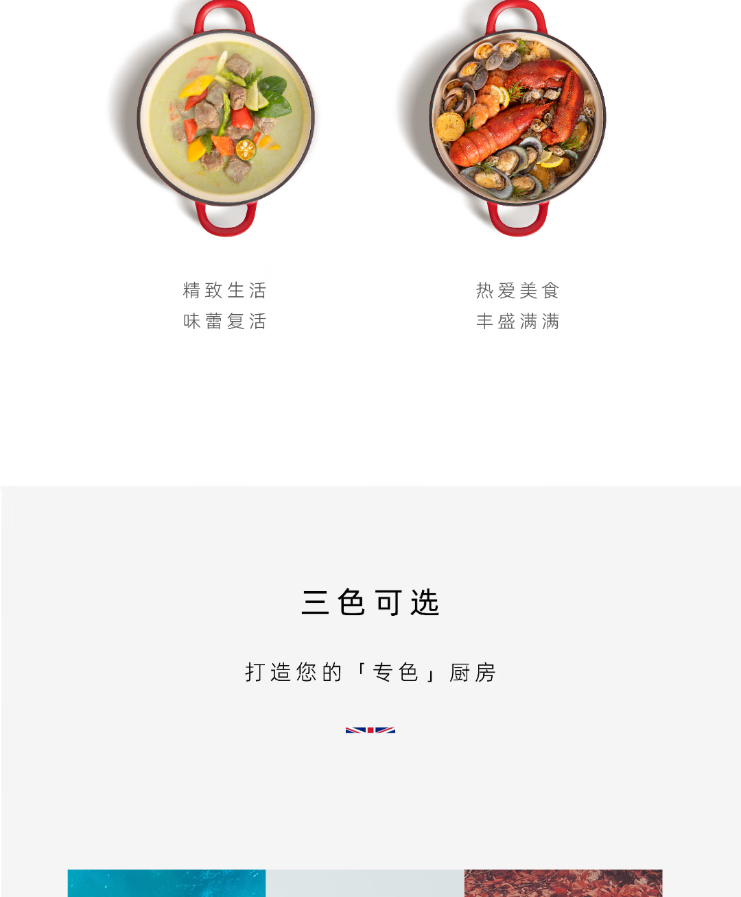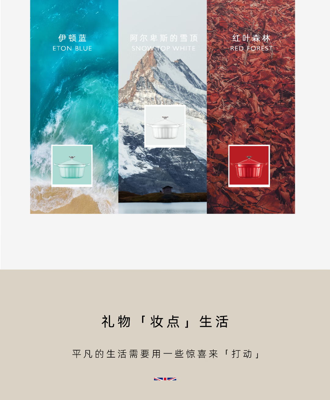 QUEENBERRY英国库白铸铁珐琅锅家用大容量深炖锅双耳汤锅多功能平底焖炖锅 「4-5人食」深炖锅-红叶森林 22cm