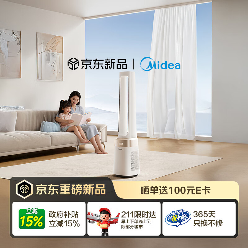 美的(Midea)【母婴呵护】双重净化无叶风扇 直流变频轻音塔扇 语音遥控落地扇 家用大风力电风扇AMS150J-GM