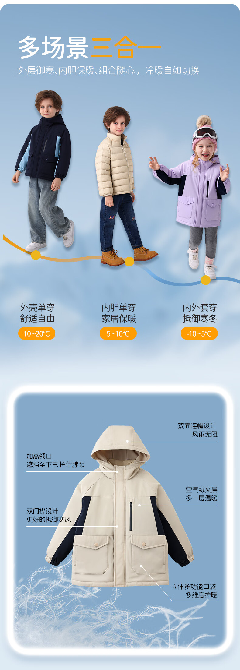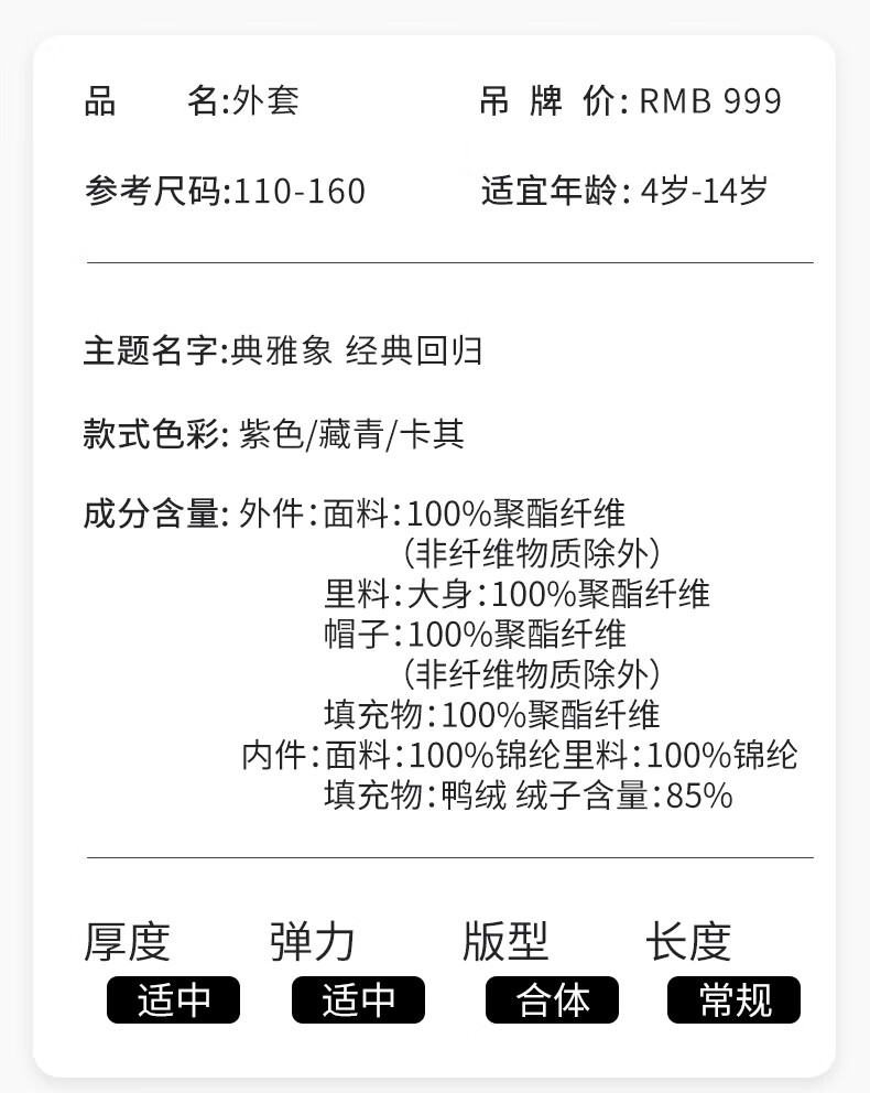 丽婴房【一衣三穿】儿童外套宝宝外套羽绒内胆2件套秋冬外套上衣 极光紫色(外套+内胆羽绒) 140 cm