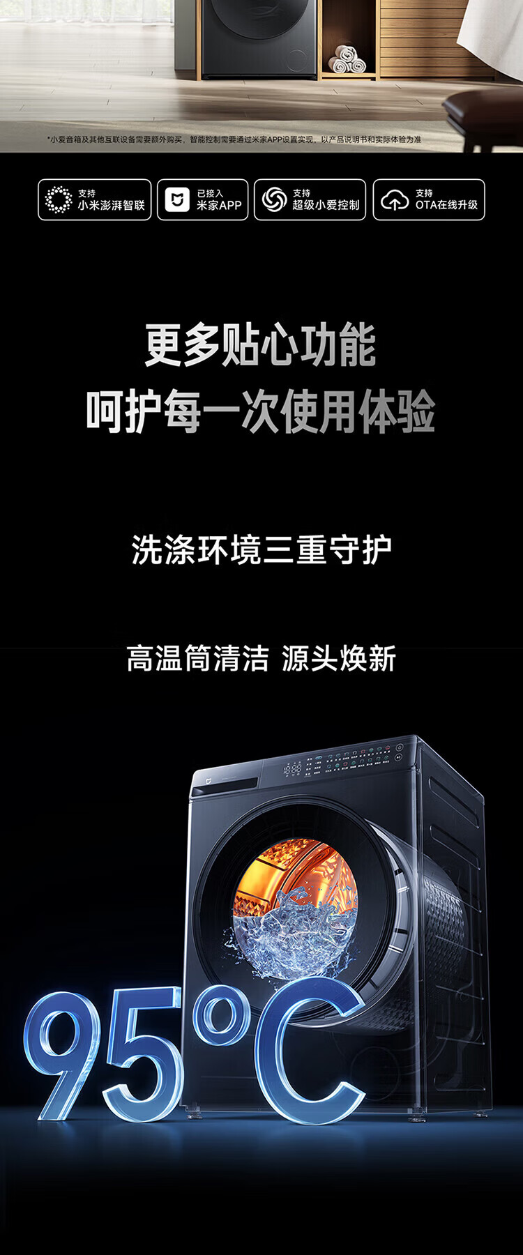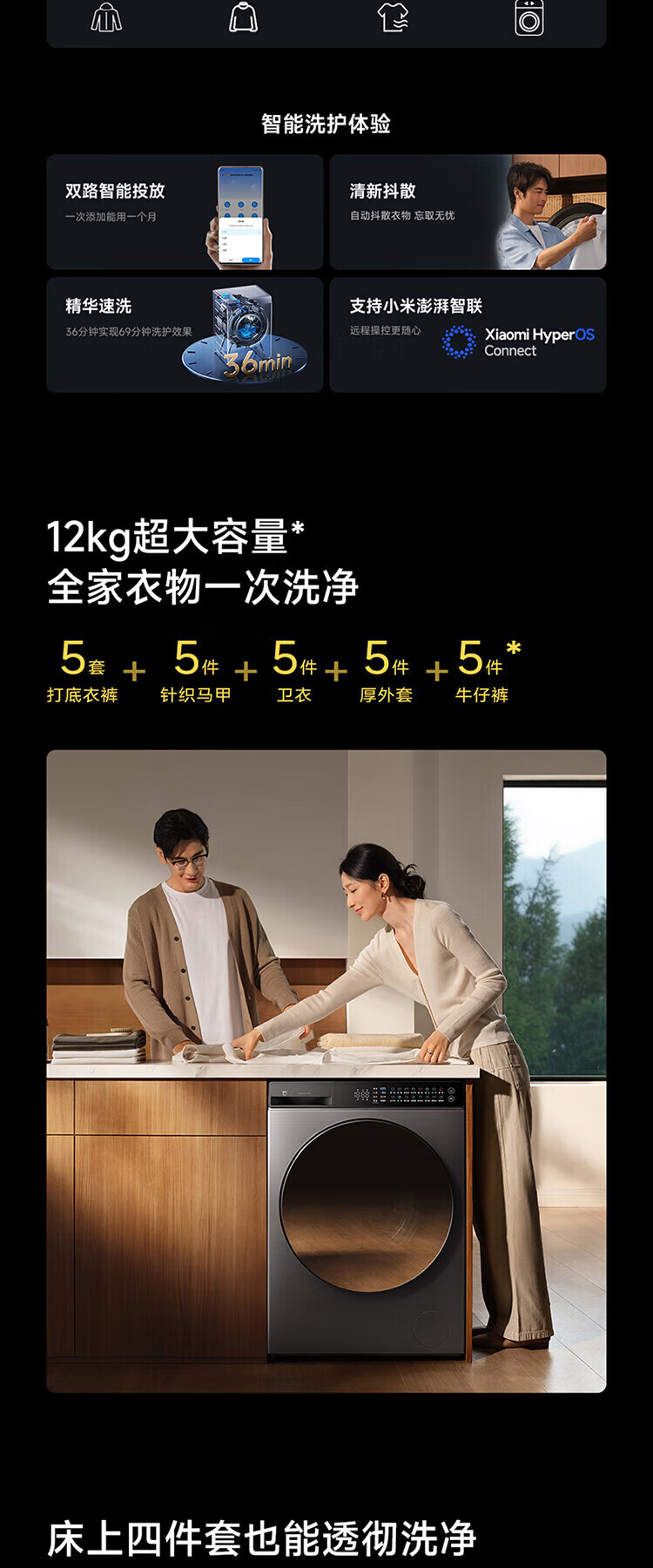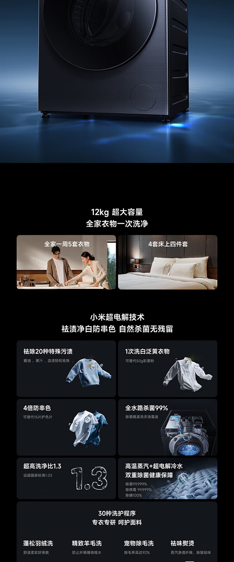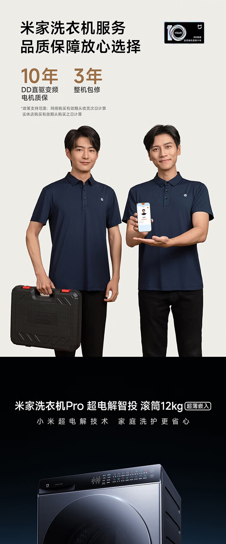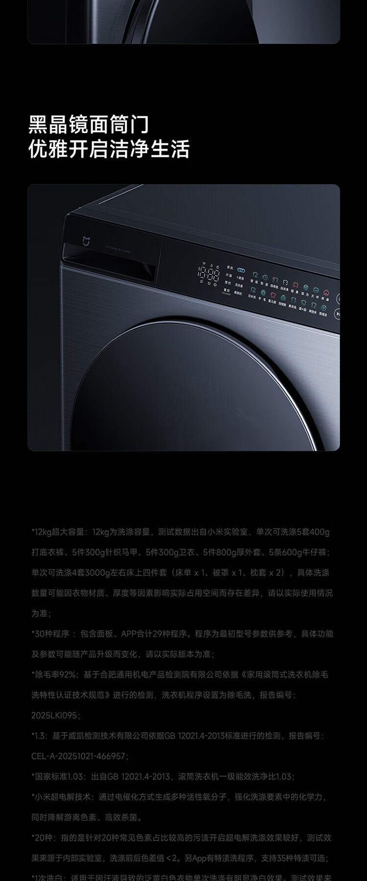 米家新品小米洗衣机Pro超电解智投滚筒12kg直驱全自动大容量高温除菌螨智能互联洗衣机家用 滚筒 12kg XQG120MJ101
