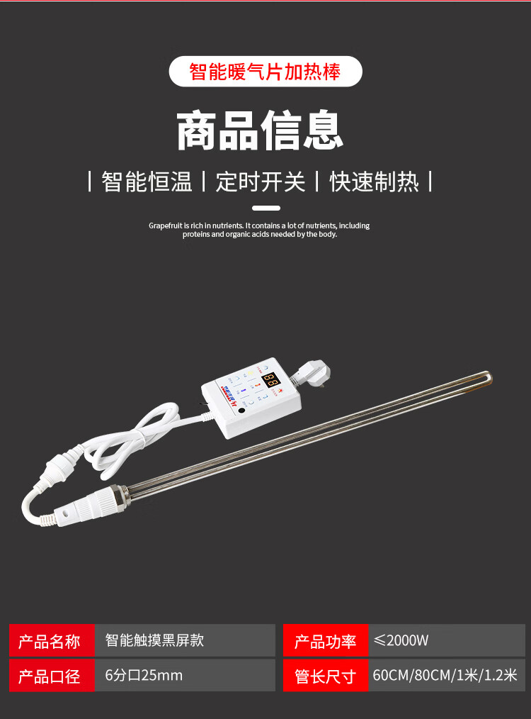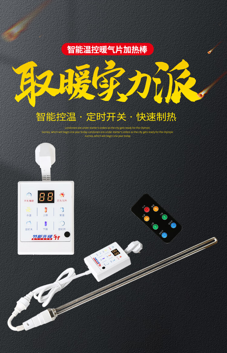 加水电暖气片加热棒智能温控土暖气加热管家用采暖水电暖器电热棒 先锋五代2000W