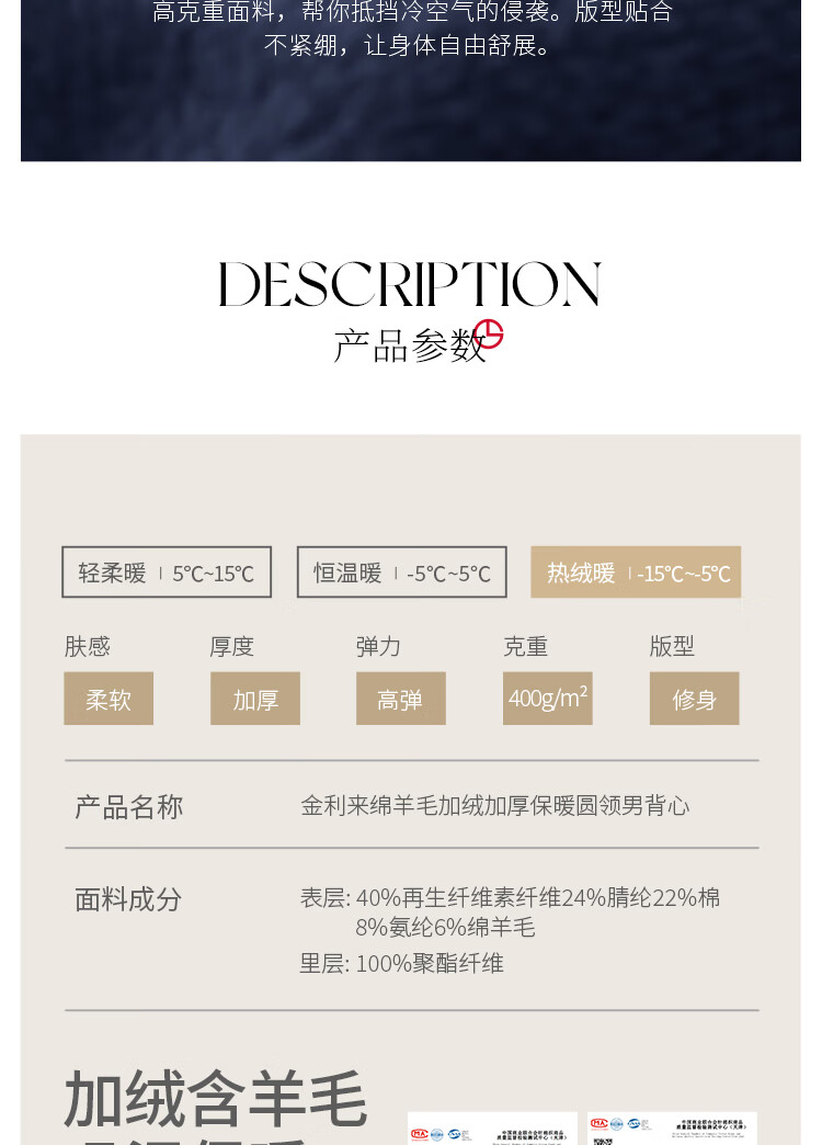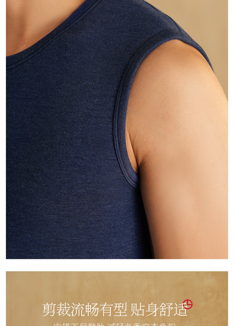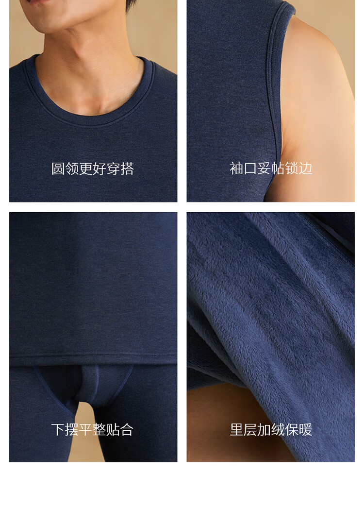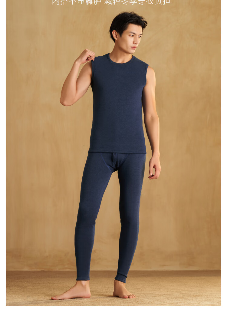 金利来保暖背心男士加厚无痕发热打底衫冬季圆领内衣男 星空蓝 3XL