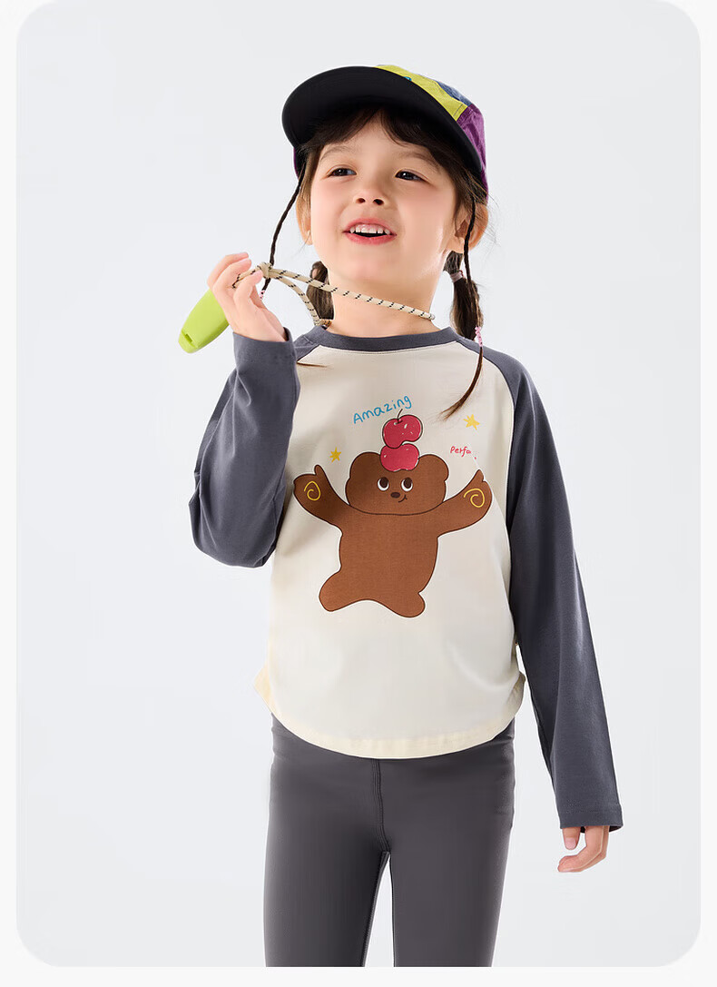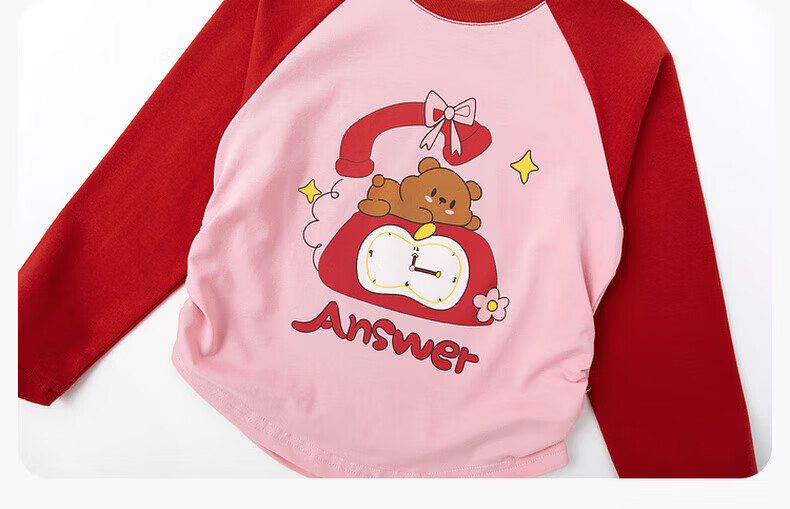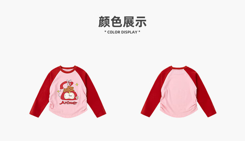 嘟嘟家女童T恤短款春款女宝长袖上衣卡通春装女孩打底儿童衣服童装洋气 卡兰达红 90