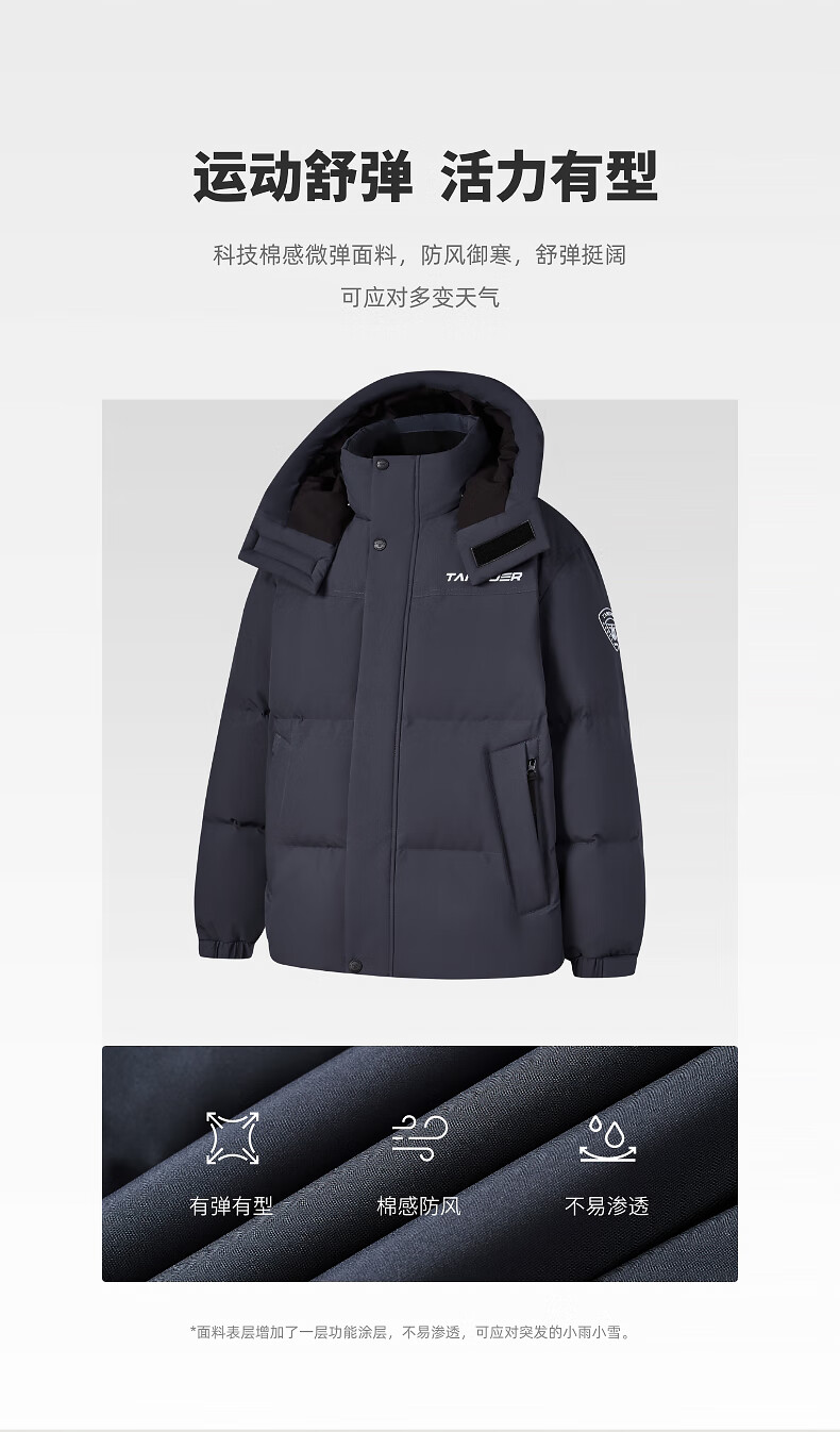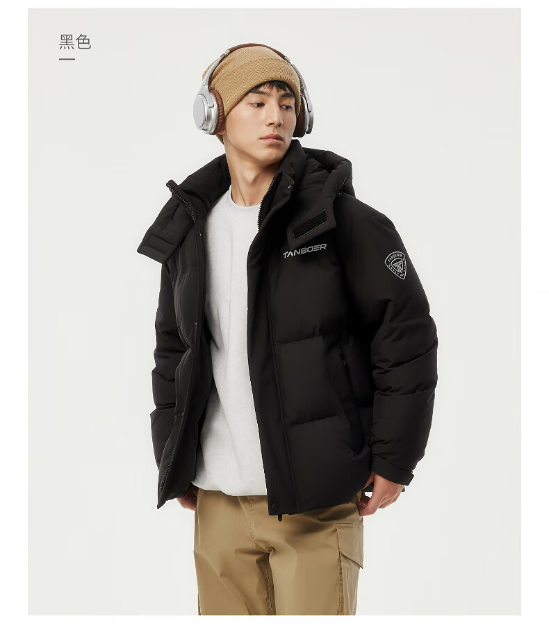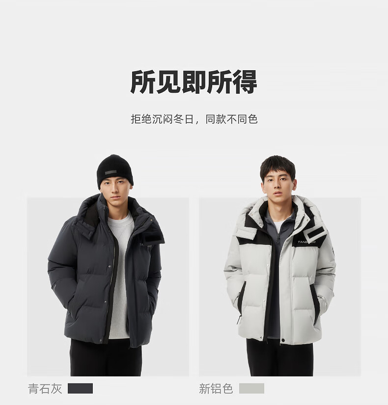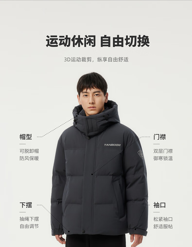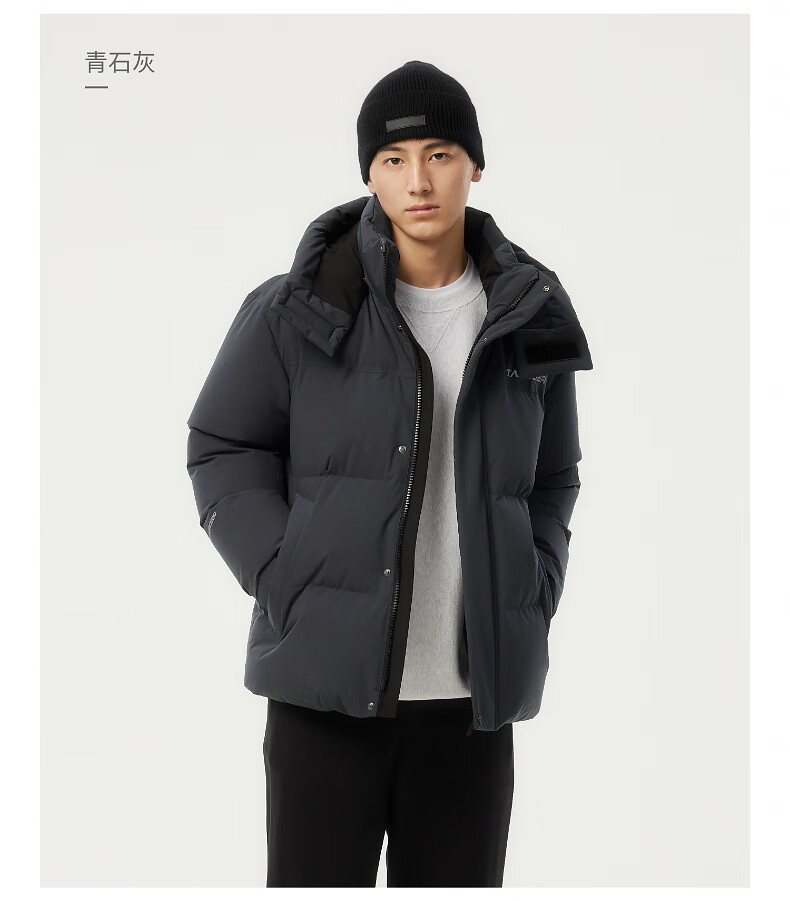 坦博尔羽绒服男短款时尚运动可脱卸帽面包羽绒服550335D 青石灰 190