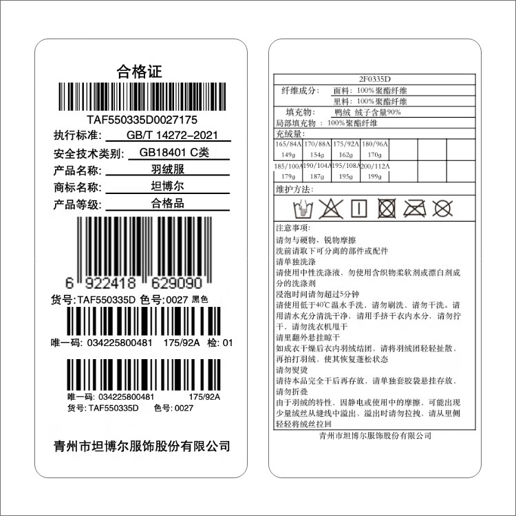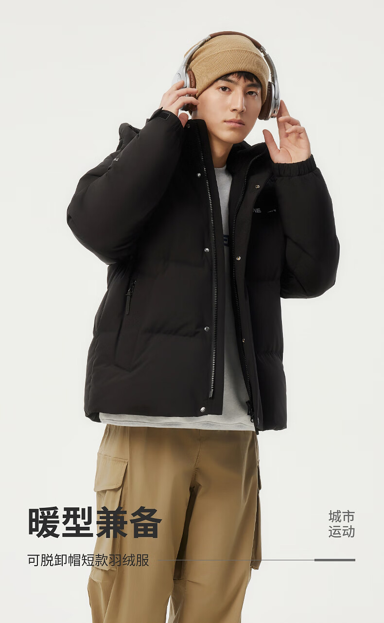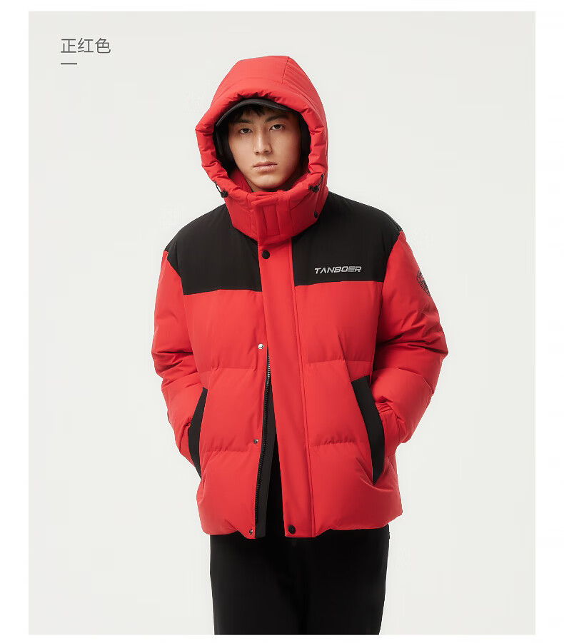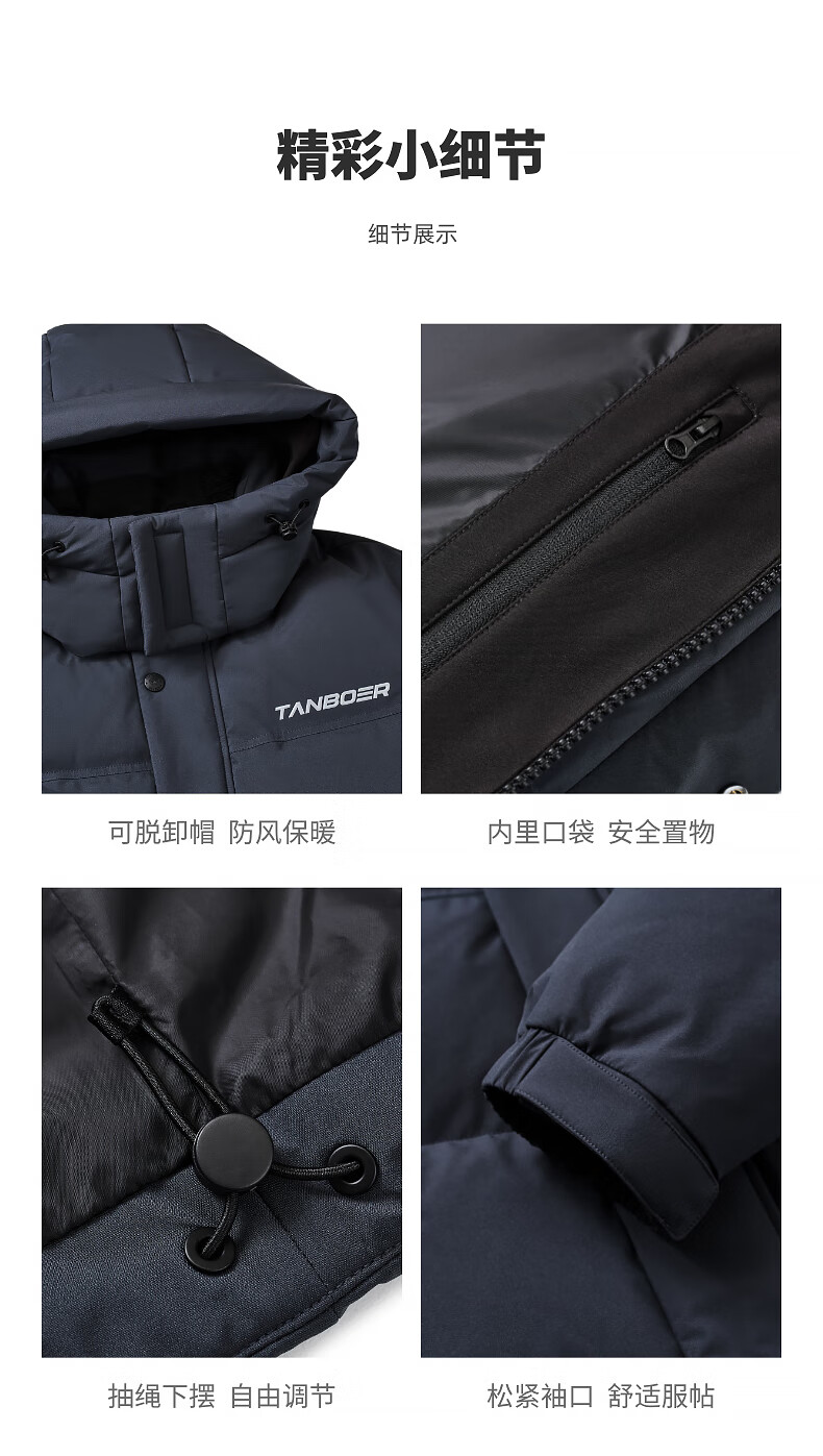 坦博尔羽绒服男短款时尚运动可脱卸帽面包羽绒服550335D 青石灰 190