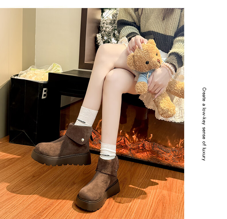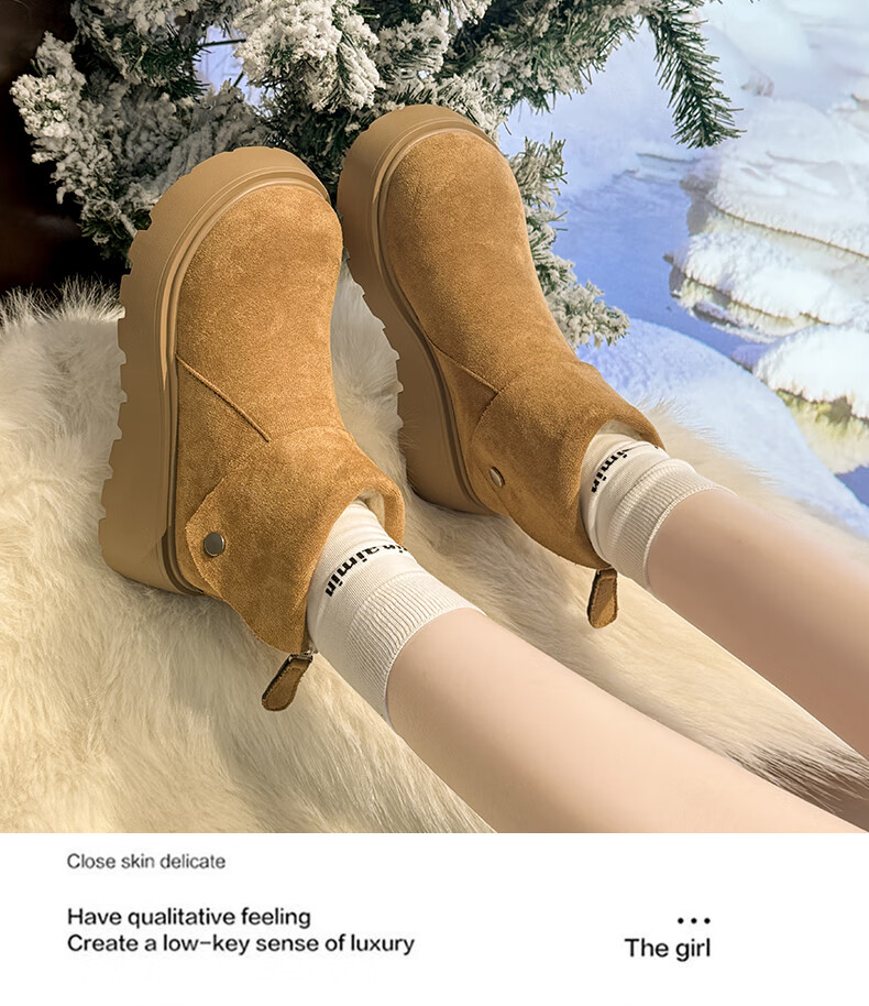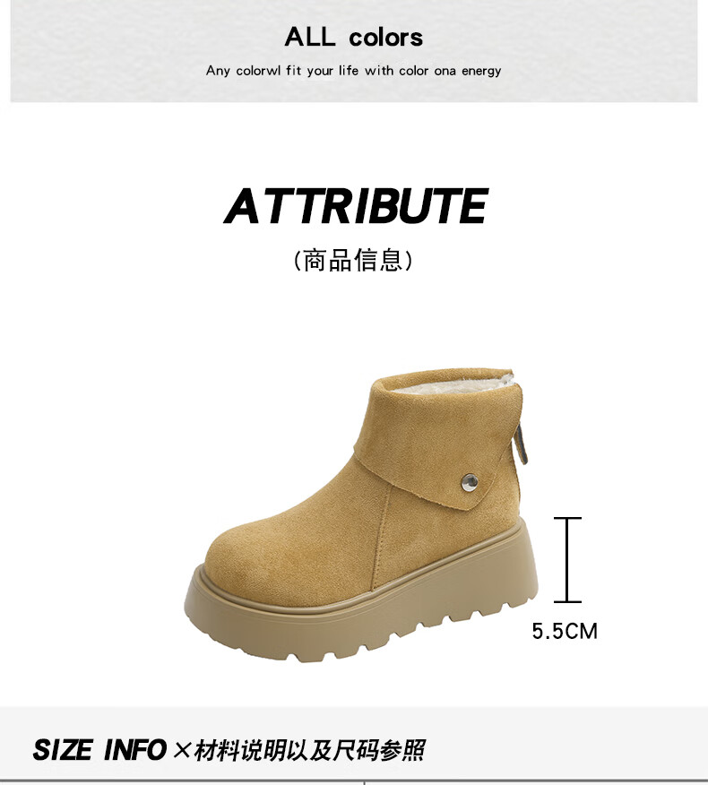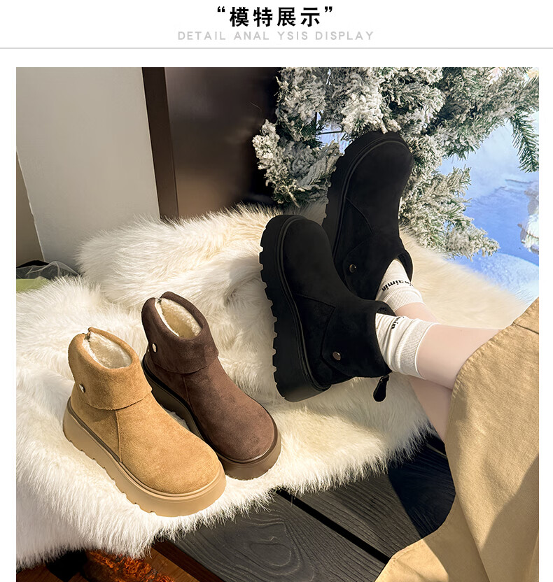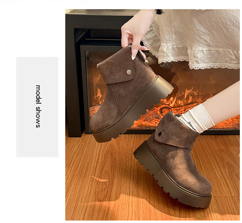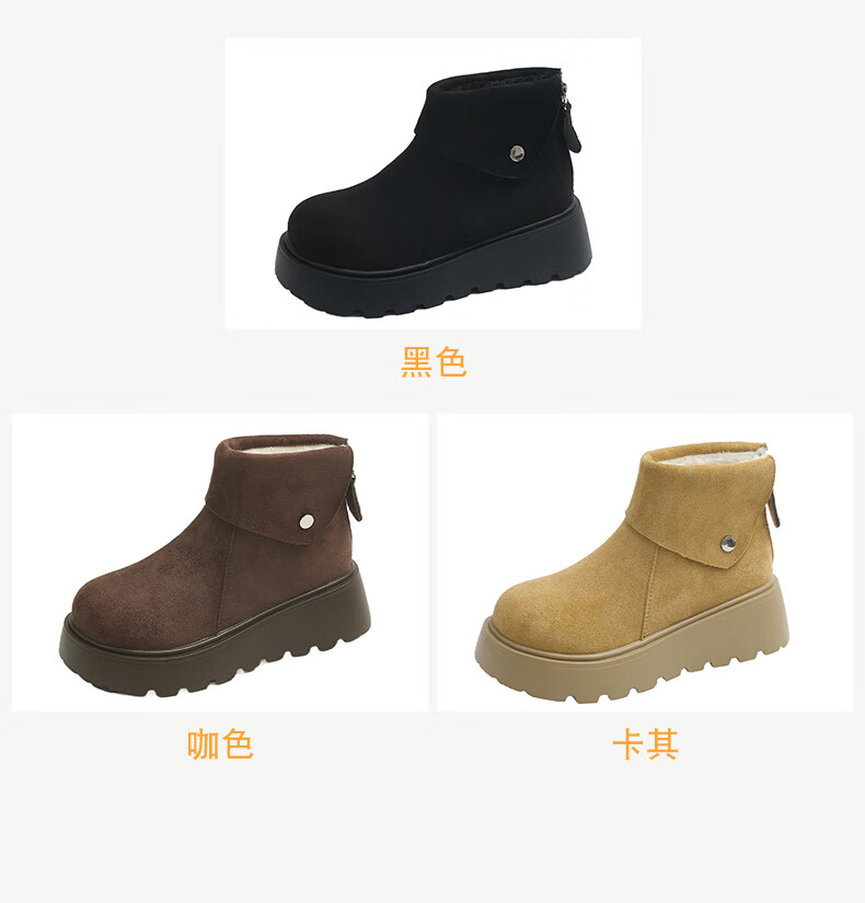 稻草人(MEXICAN)厚底增高皮毛一体雪地靴女2026秋冬季新款加绒加厚保暖棉鞋短靴子 卡其色 35