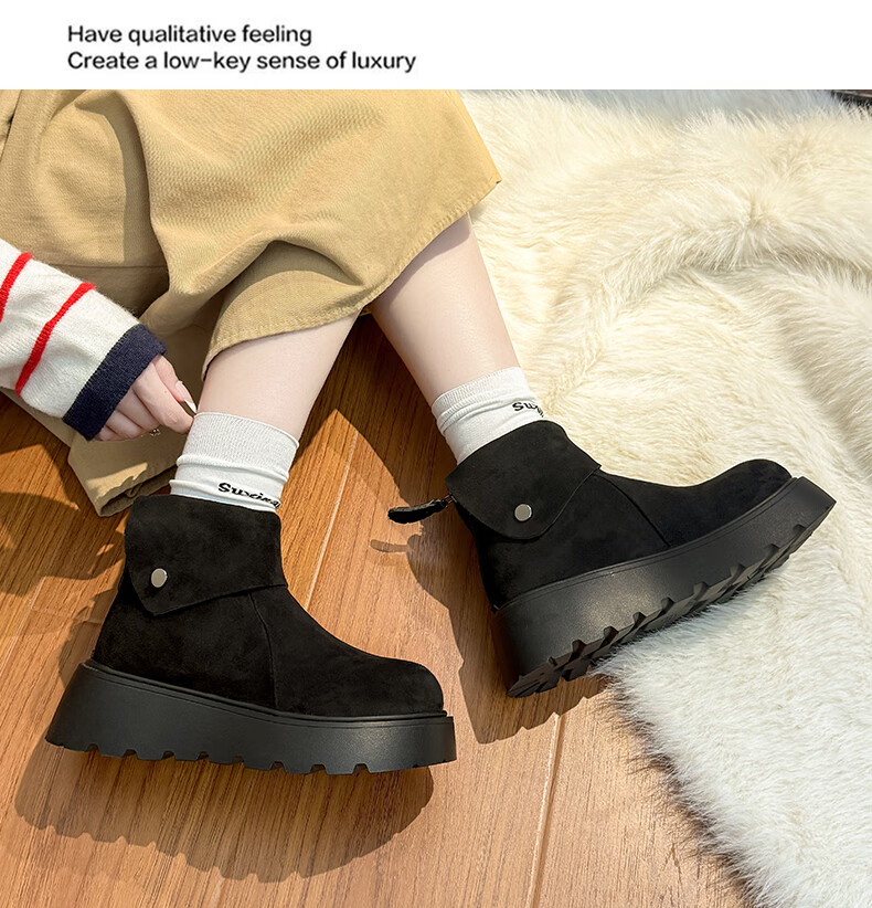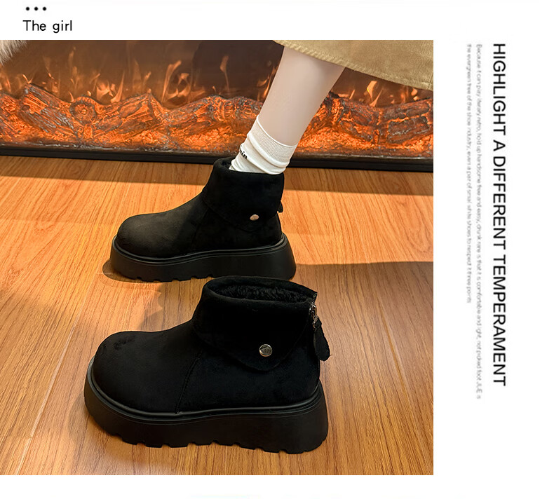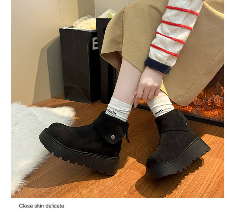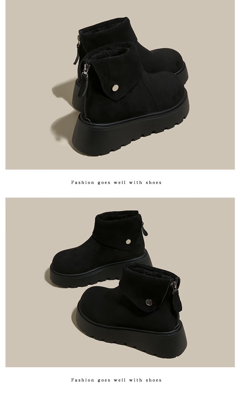 回力四季2025秋冬新款时尚百搭厚底高帮鞋休闲复古加绒保暖短筒靴女士棉鞋 黑色 37