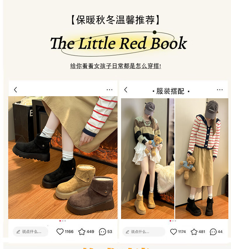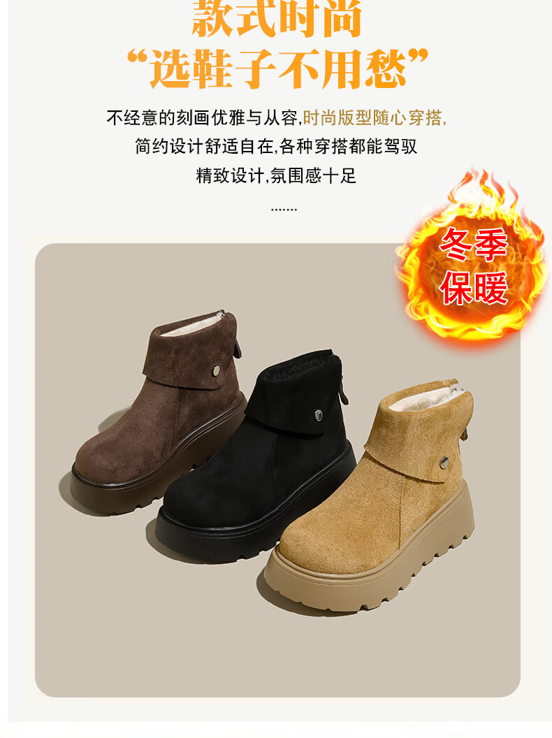 回力厚底棉鞋女鞋2026冬季新款女士户外加绒加厚舒适御寒百搭休闲鞋 驼色 37