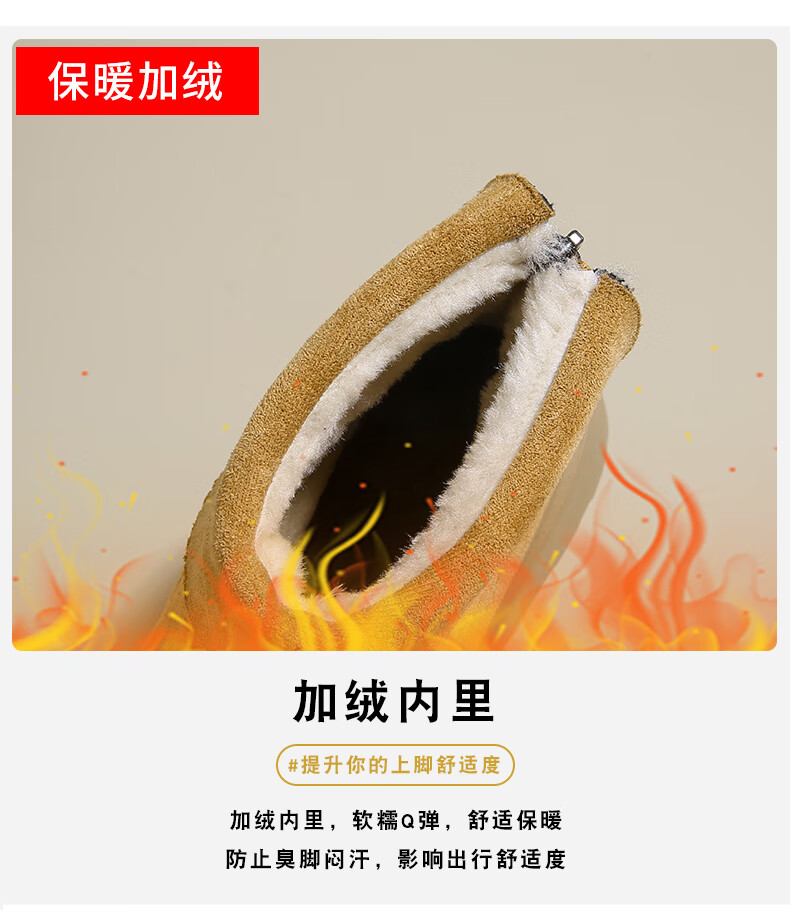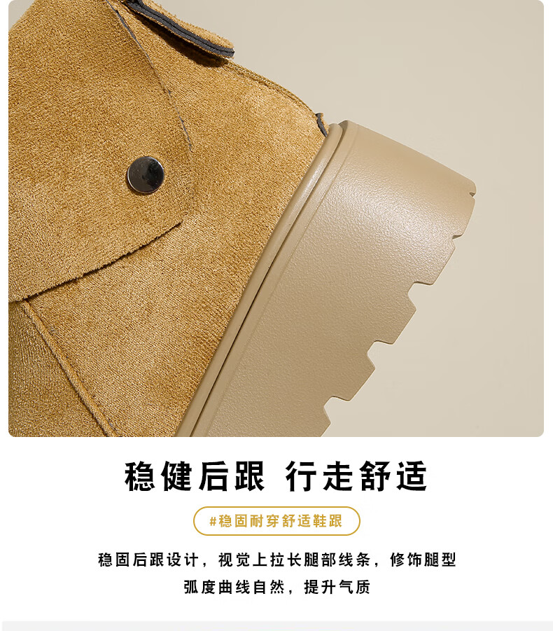 惠奴比厚底显瘦绒面堆堆弹力靴过膝靴子女2025秋冬新款两穿长筒靴时装靴 卡其色【热卖升级款】 36