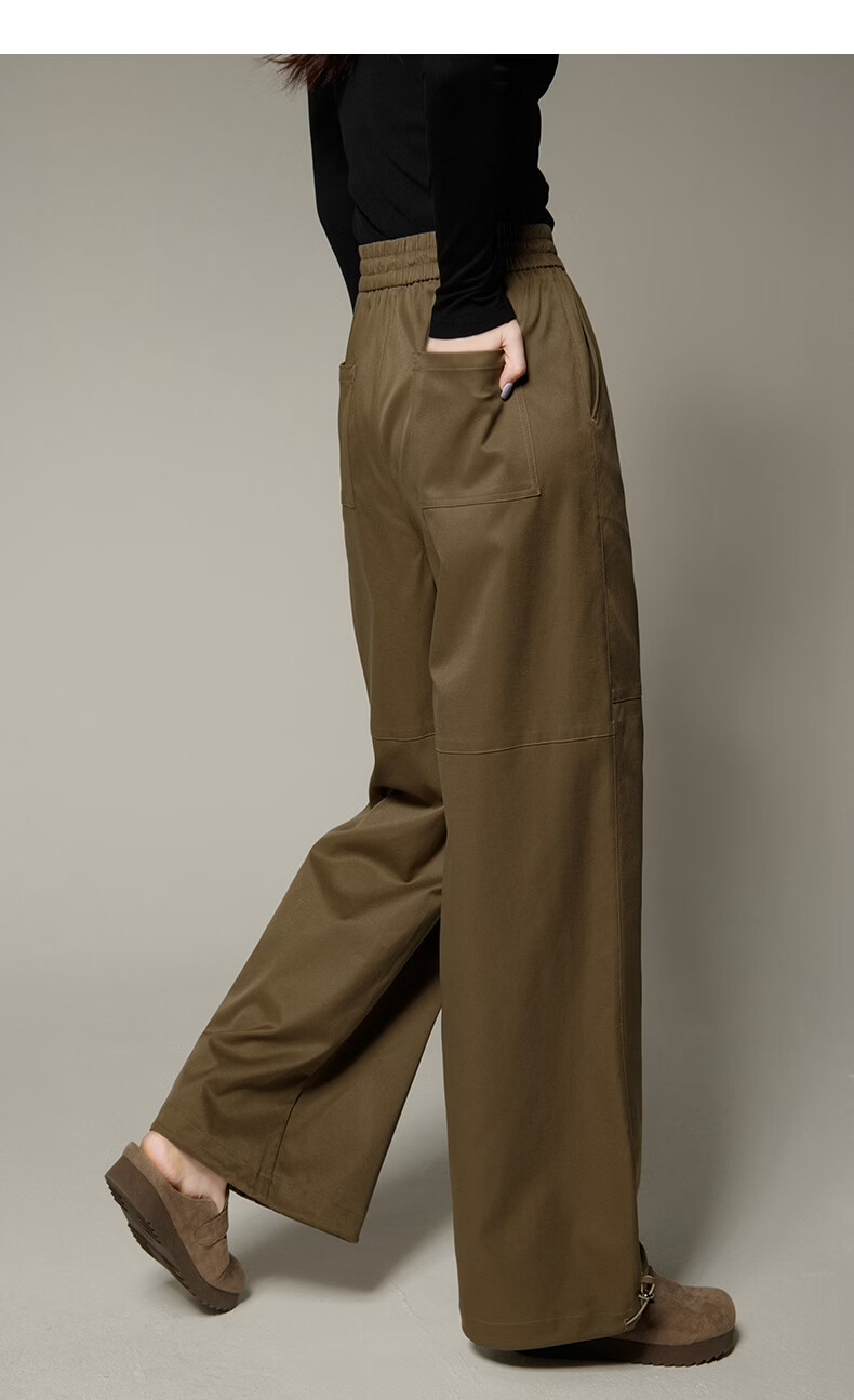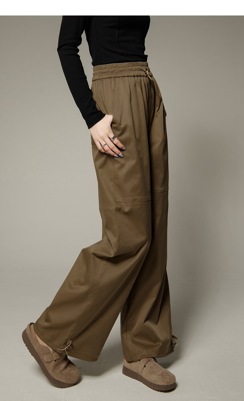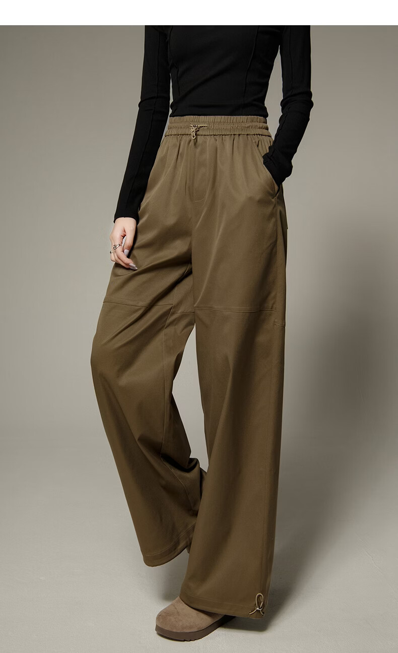 晚白【专享】2026春款时尚休闲高腰工装裤遮胯显瘦舒适百搭阔腿裤女 卡其色 27