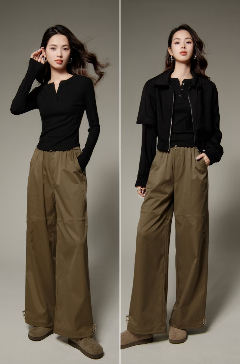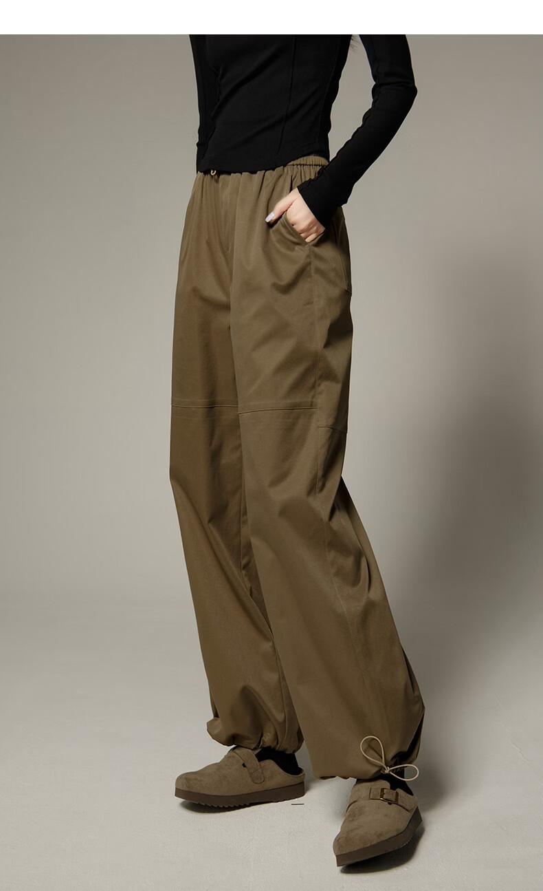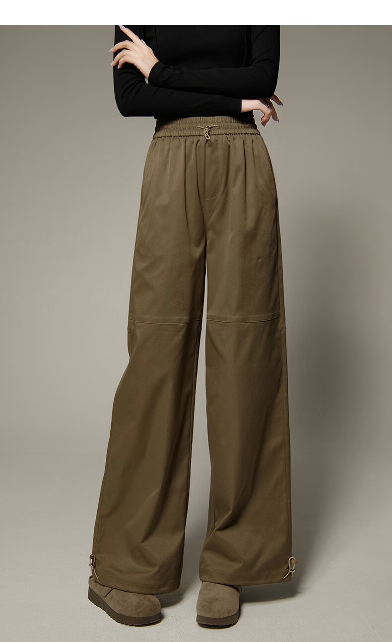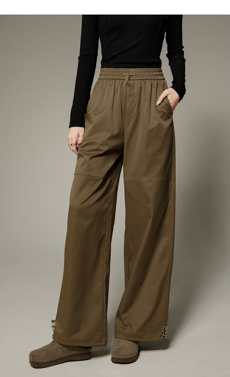 晚白【专享】2026春款时尚休闲高腰工装裤遮胯显瘦舒适百搭阔腿裤女 卡其色 27