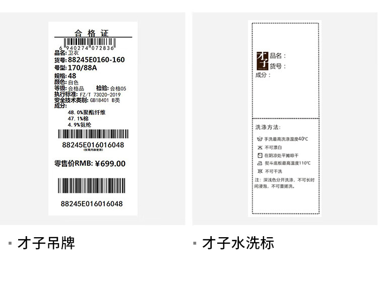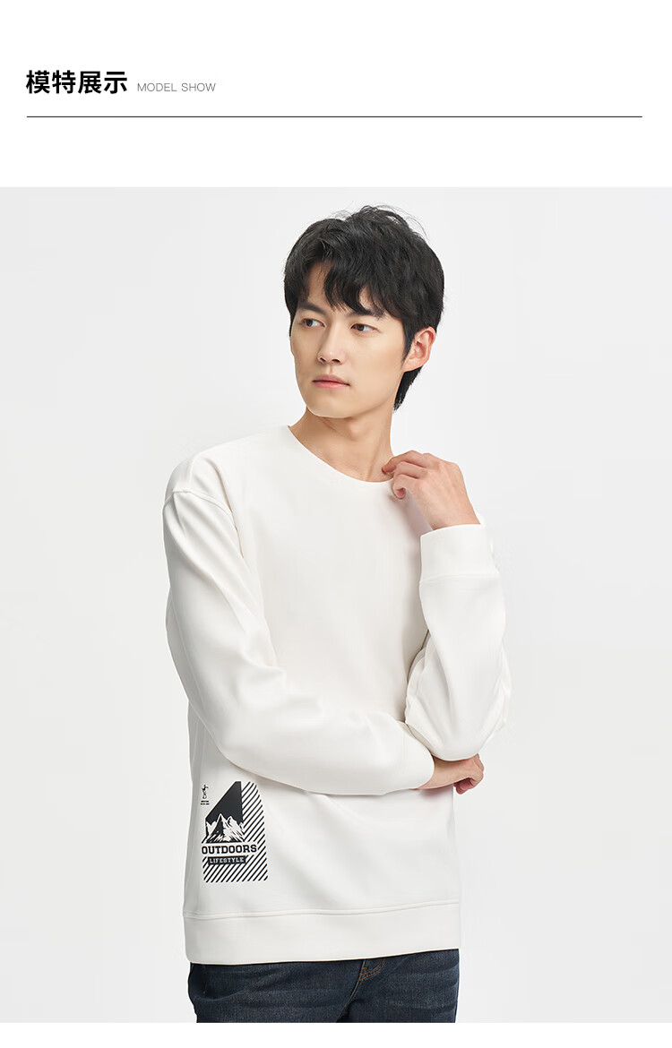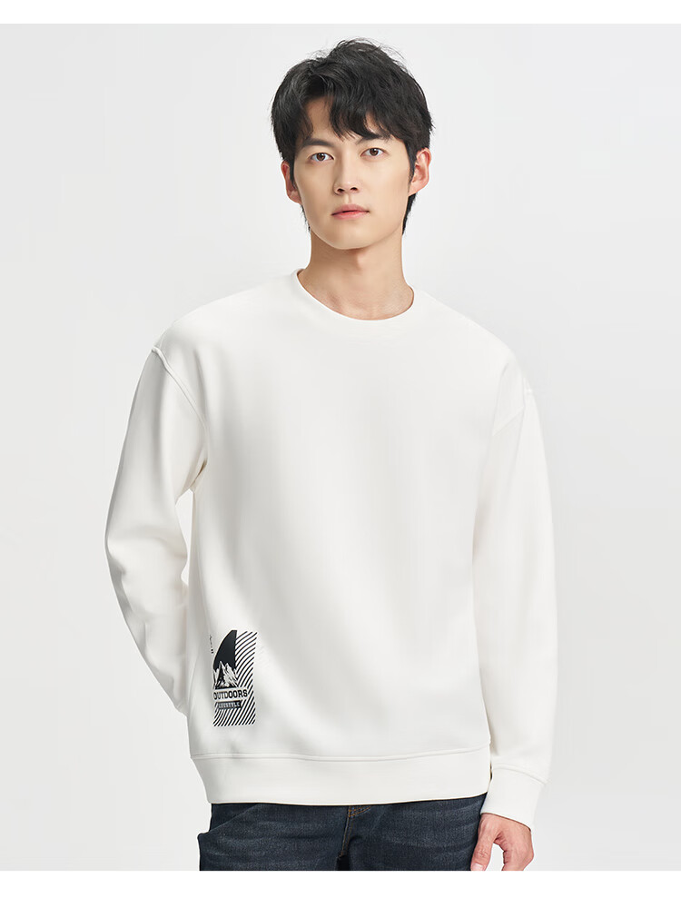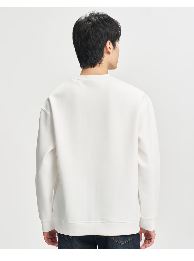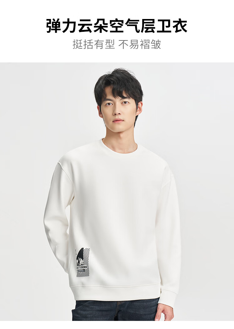 才子(TRIES)男士圆领卫衣春秋款空气层几何提花时尚简约休闲套头上衣T恤 白色 XL 50(175/92A)