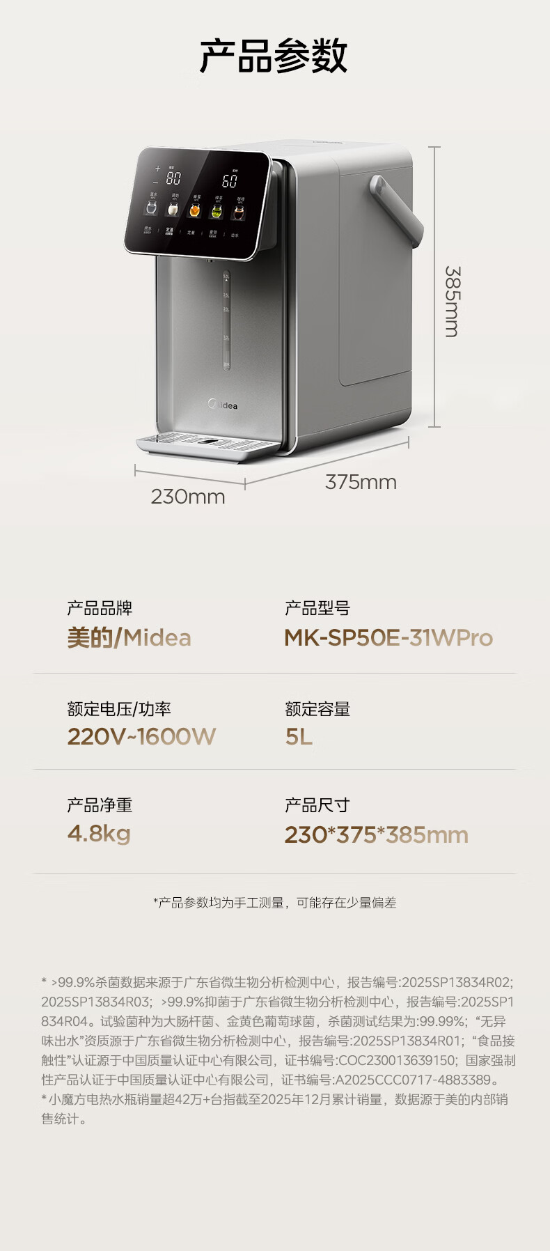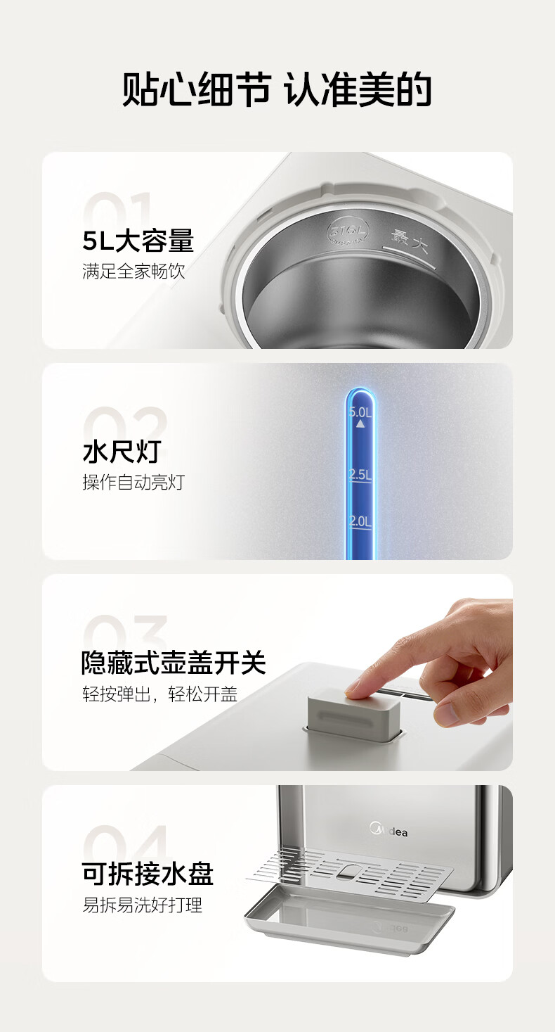 美的(Midea)小魔方pro电热水瓶5L大容量烧水壶多段恒温电热水壶316L不锈钢内胆开水壶补贴可拆水箱 5L 【26年全新升级】SP50E-31WPro